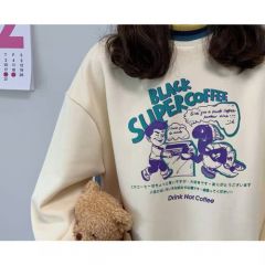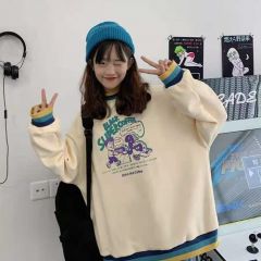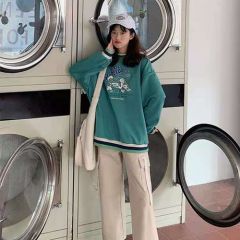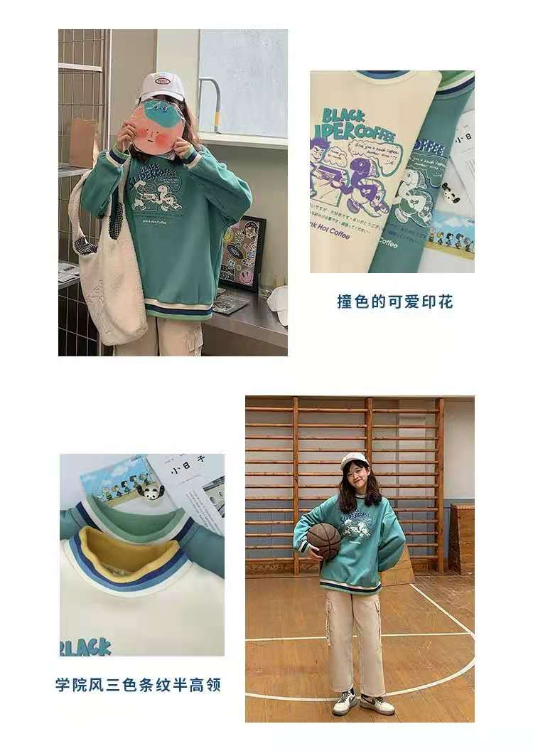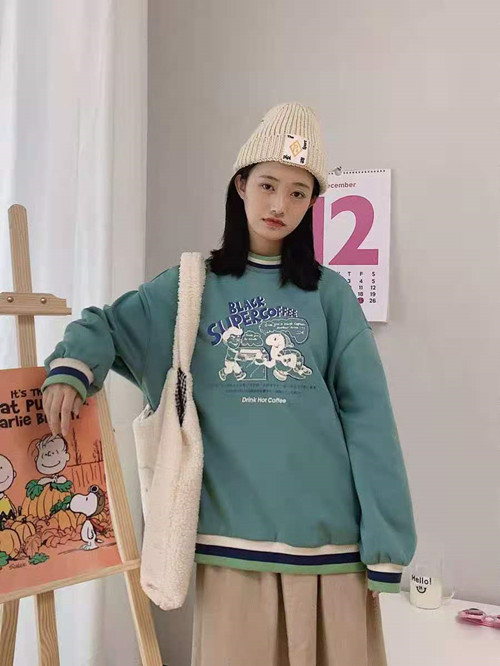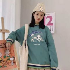 青蔷薇宽松圆领加绒加厚卫衣女2020秋冬新款长袖日系圆领无帽上衣 绿色 S
