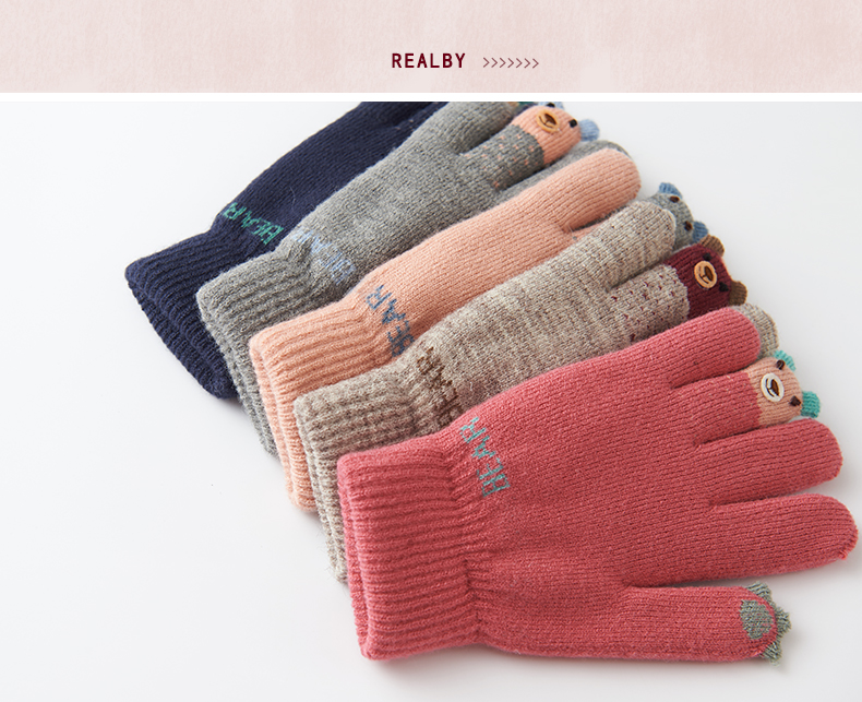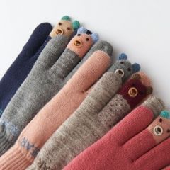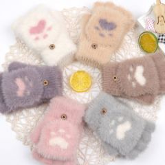 绒毛手套冬季骑行加厚防寒绒毛线手套女冬可爱韩版卡通学生触屏棉手套女冬加厚 保暖