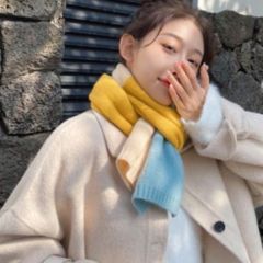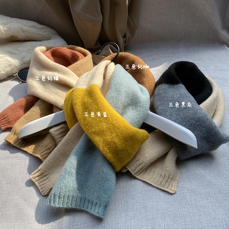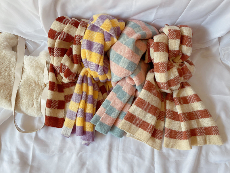 秋冬季围巾韩版百搭学生针织格子围巾女秋冬季韩版百搭学生可爱少女保暖加厚毛线围脖男潮