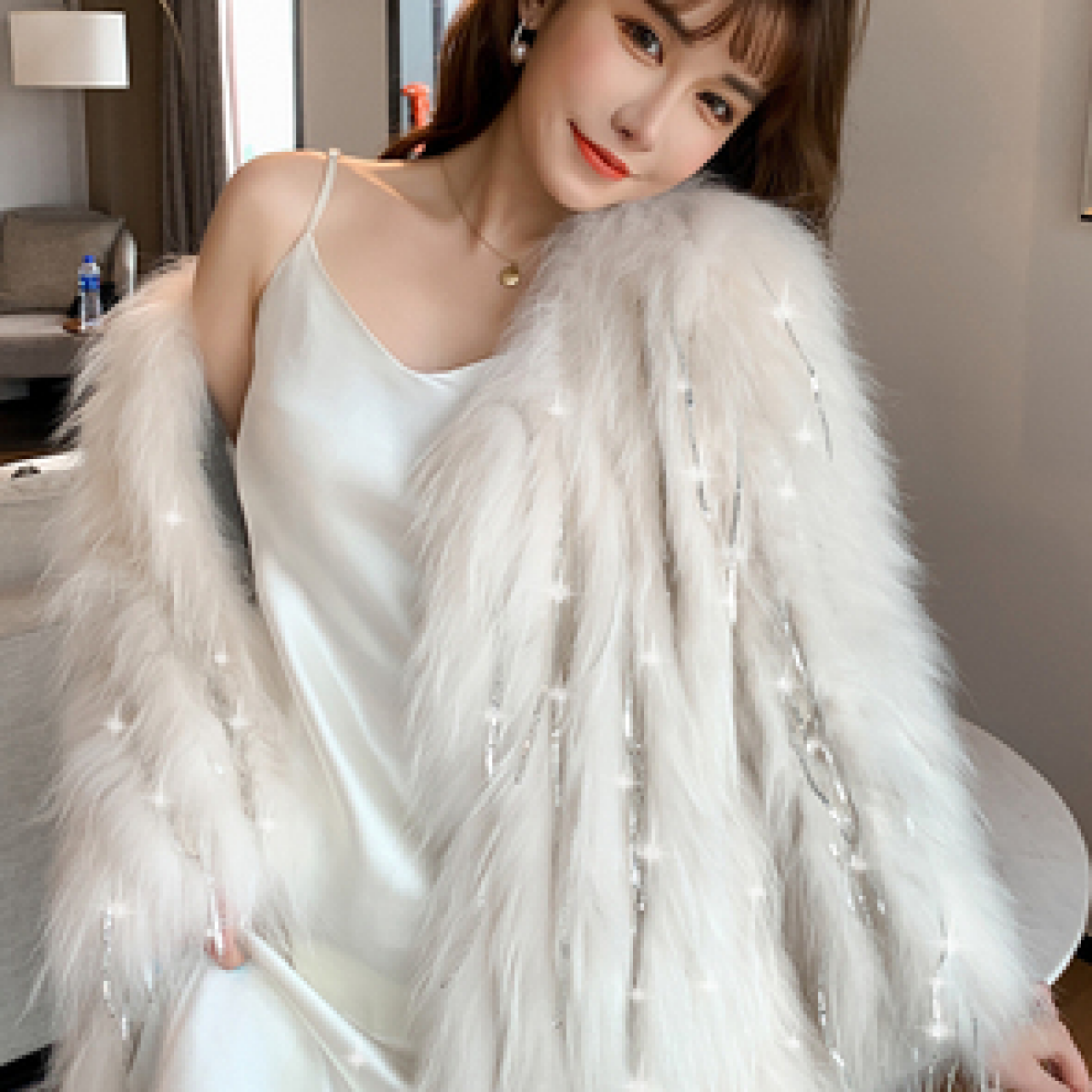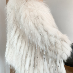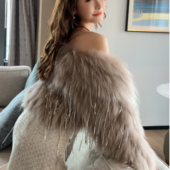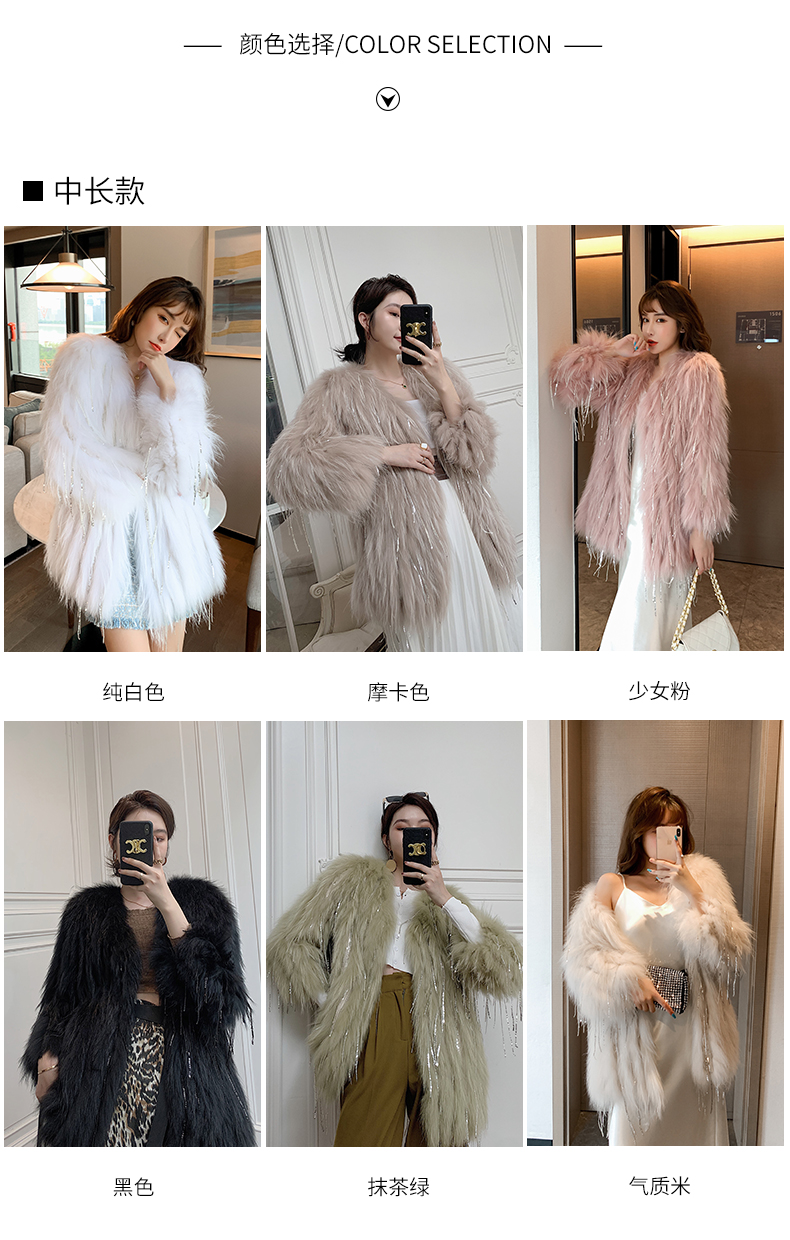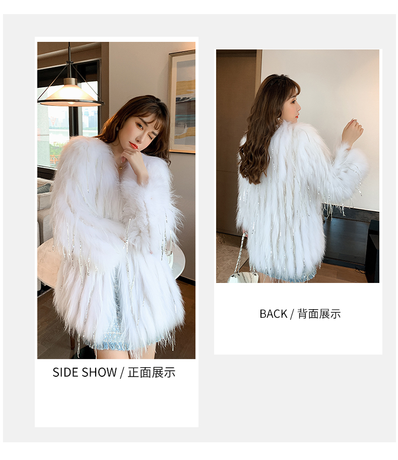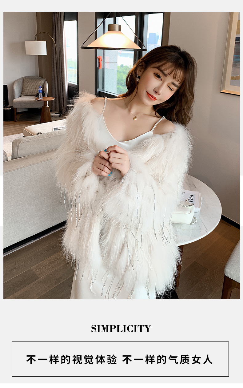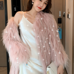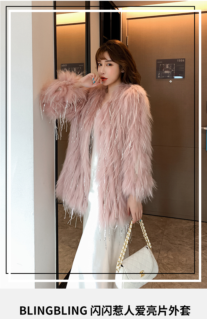 Biling中长款水钻流苏亮片车条貉子毛编织皮草外套女短款网红年轻