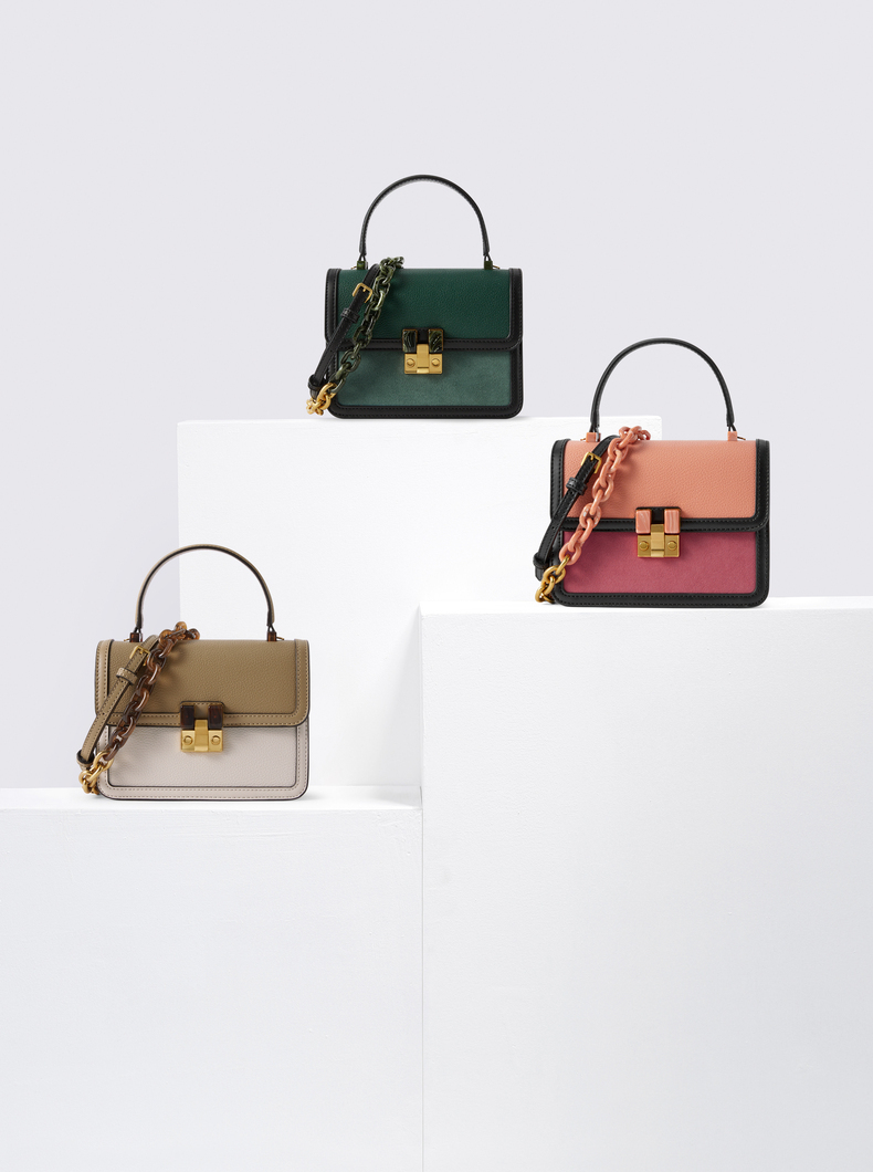 CHARLES KEITH女包CK2-50781189拼接链条手提单肩包
