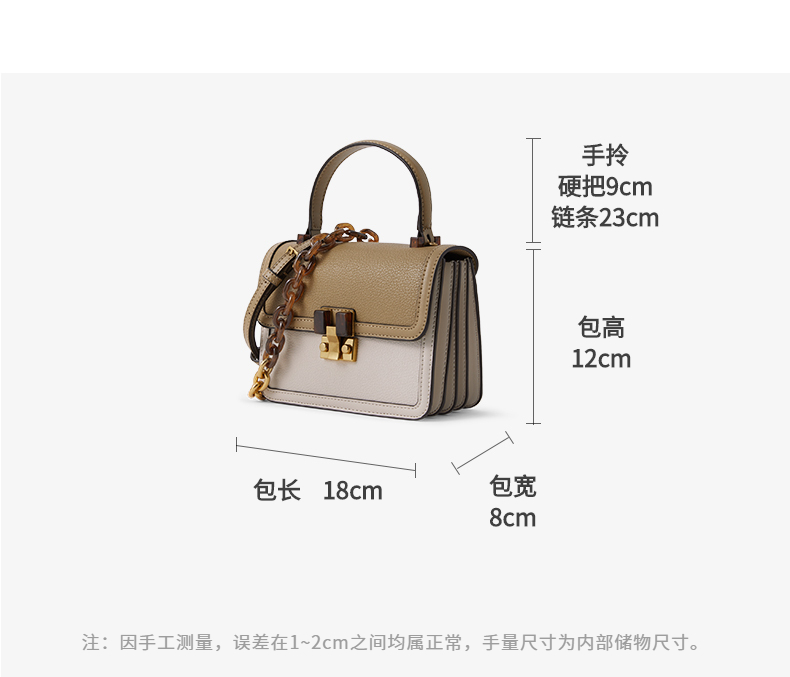 拼接链条设计, 风琴包身,搭配别致锁扣;风格简约大气