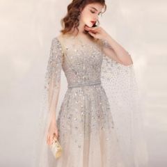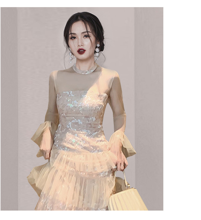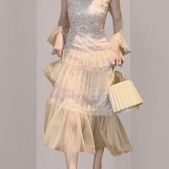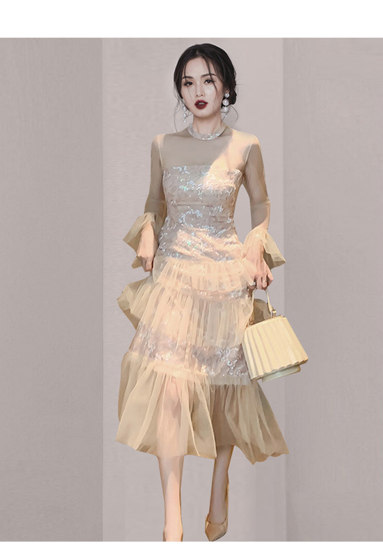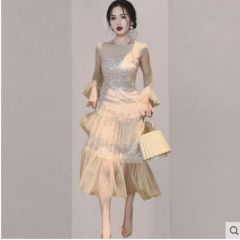 名媛优雅气质宴会礼服裙2020秋冬新款女网纱拼接连衣裙蛋糕长裙子