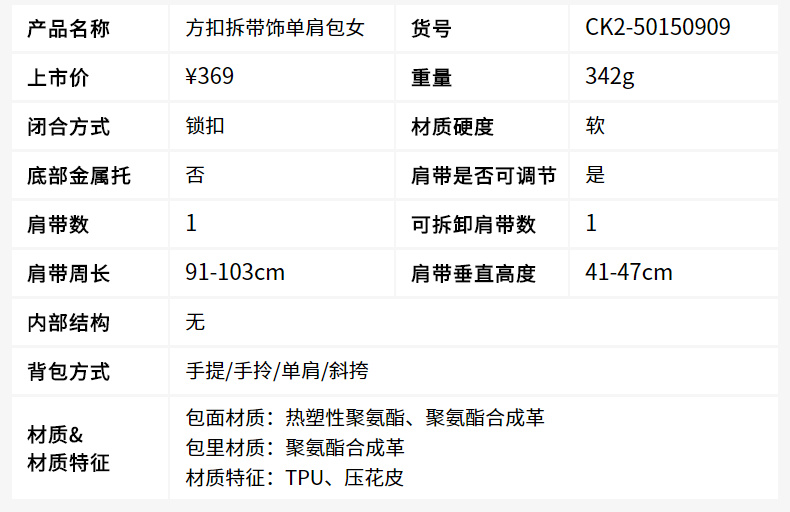 拼色搭配,俏皮可爱;PU材质搭配锁扣,设计感十足;同时还有多个色彩供您选择~