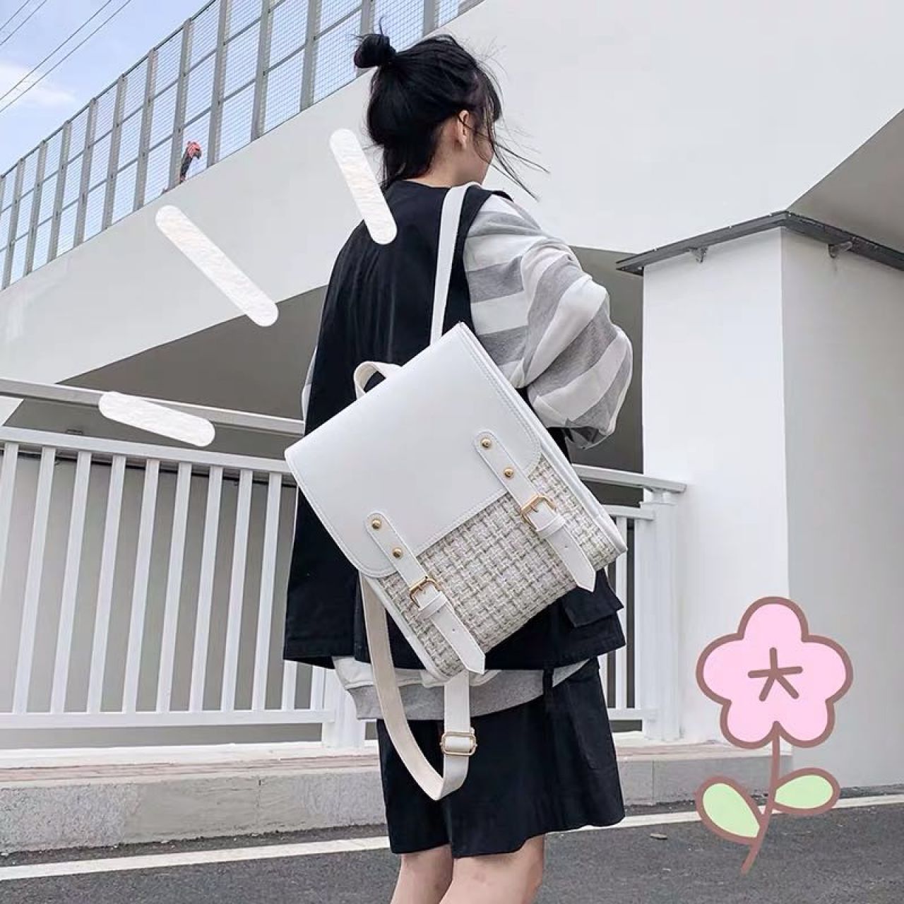 韩版女士大容量双肩包2020秋冬新款潮时尚呢子背包简约百搭旅行包