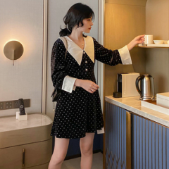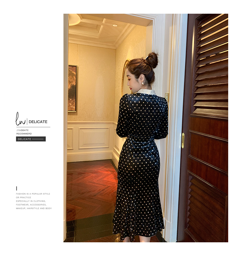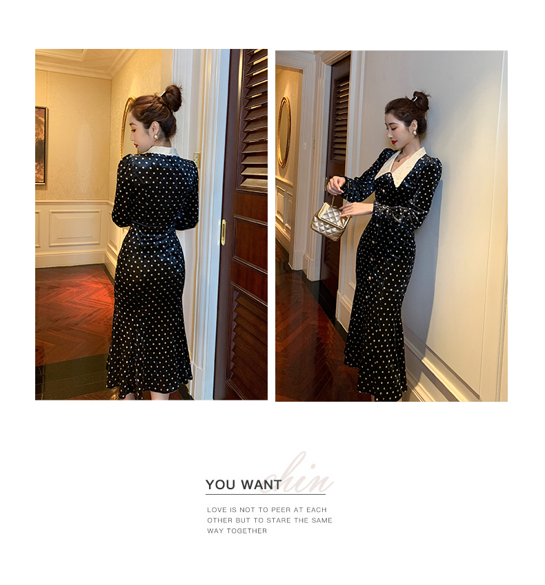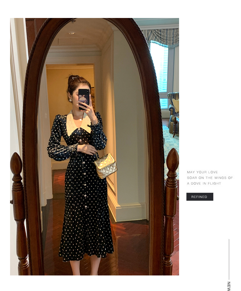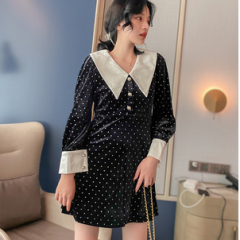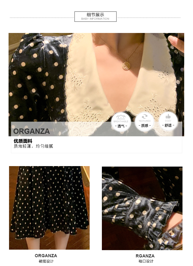ő 收藏宝贝 (206人气) 丝绒心机连衣裙女秋冬复古娃娃领气质收腰显瘦拼接长袖波点短裙