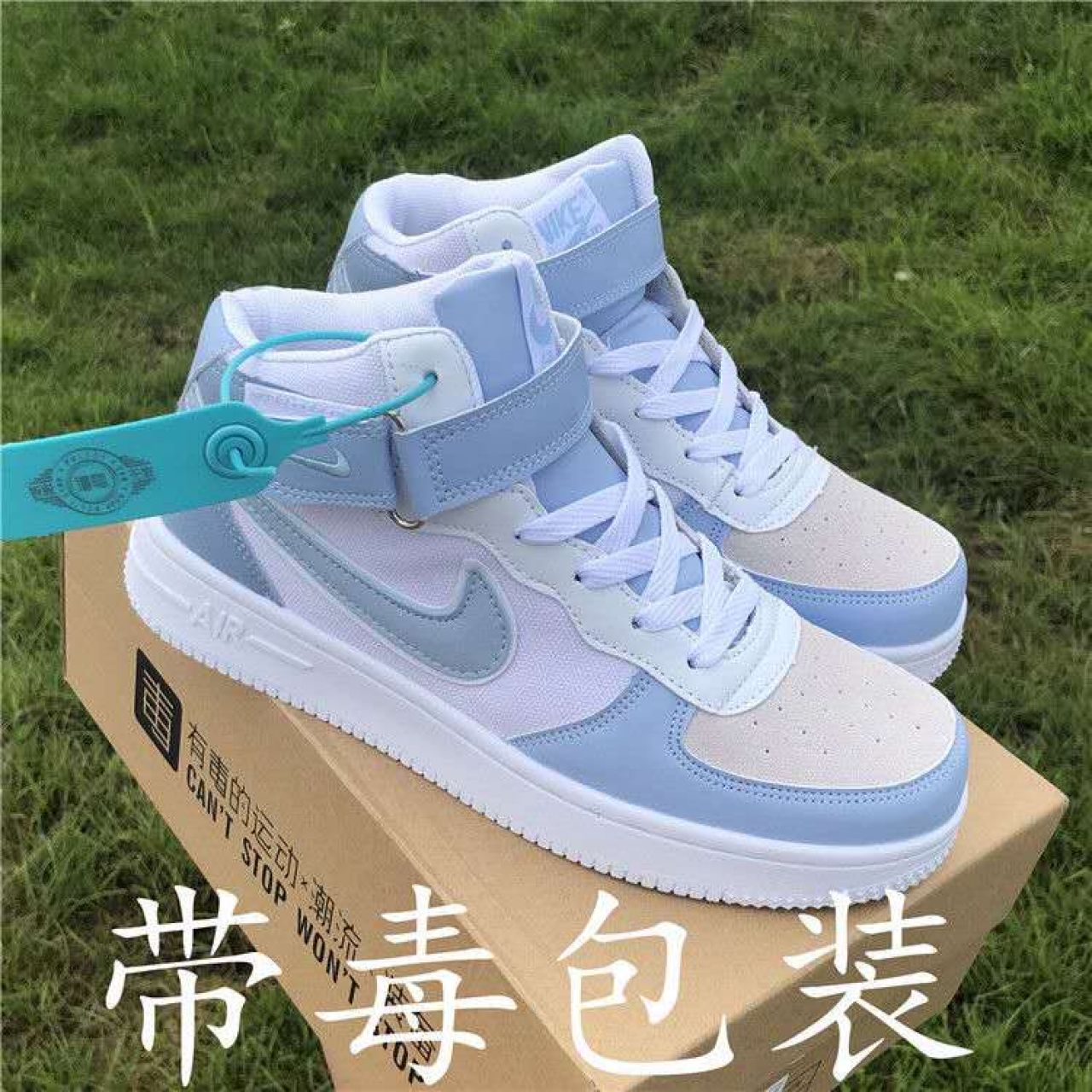 ins超火空军一号云雾蓝高低帮小白鞋韩版百搭休闲加绒运动跑步鞋