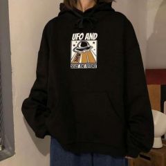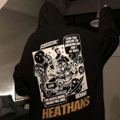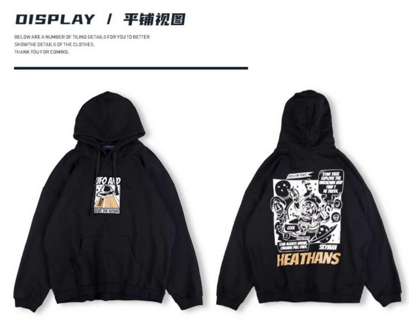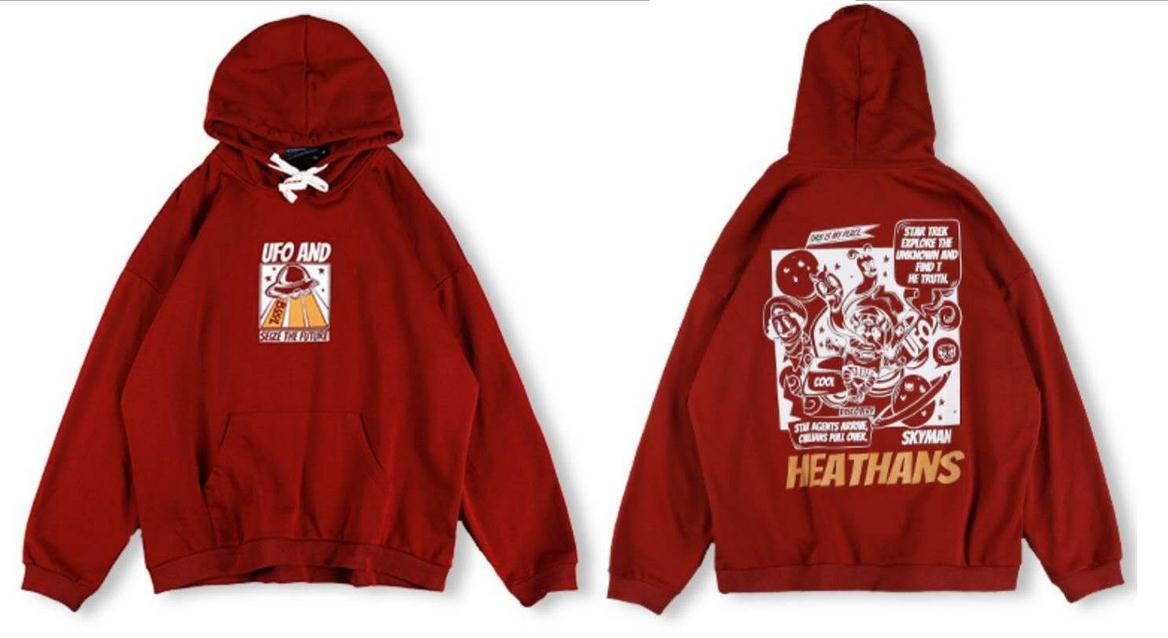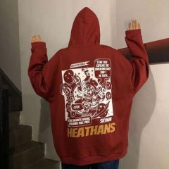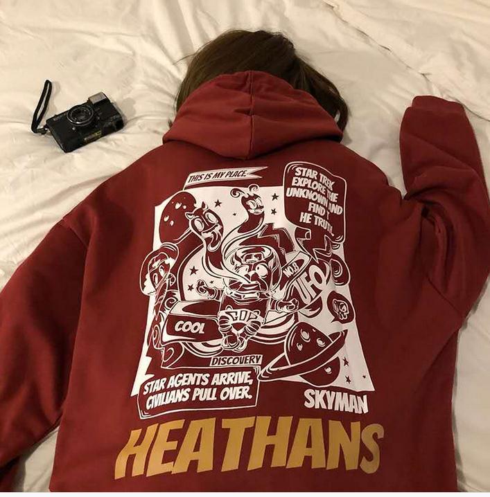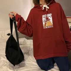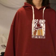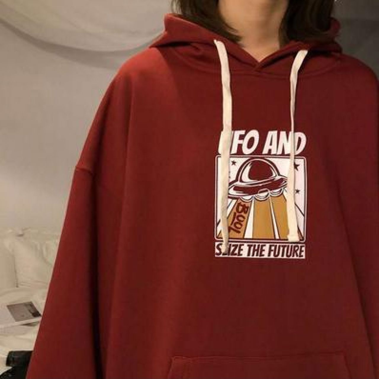 YITE美式卡通宽松加厚加绒连帽卫衣女bf慵懒风酒红色外套女潮ins