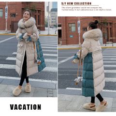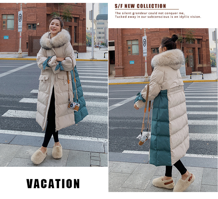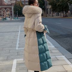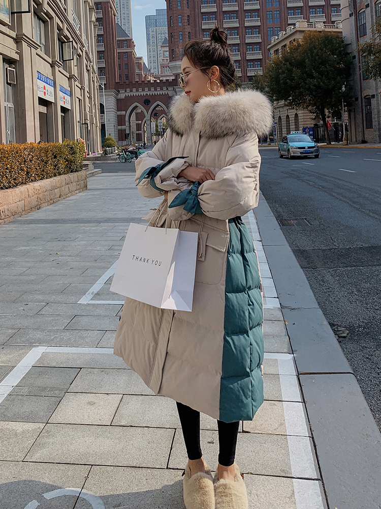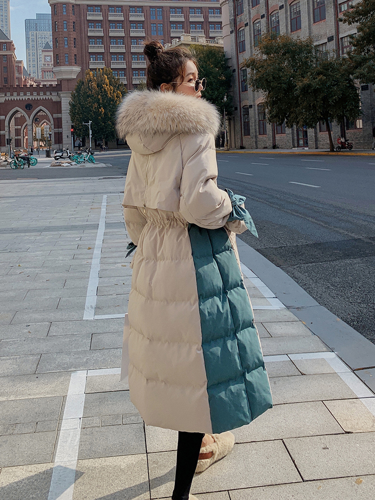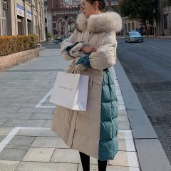 收腰显瘦大毛领羽绒棉服女中长款2020年冬季新款撞色加厚保暖棉衣