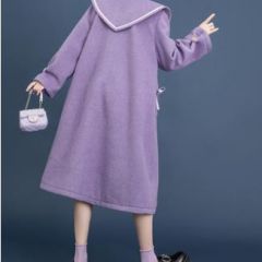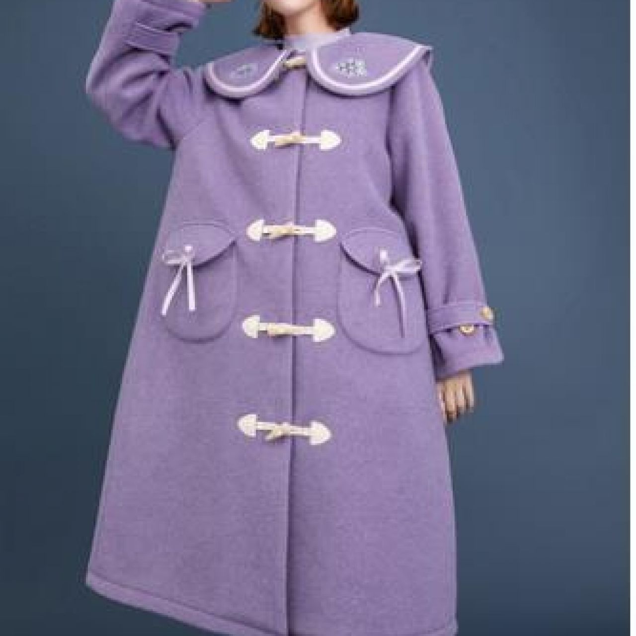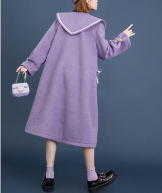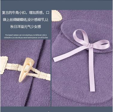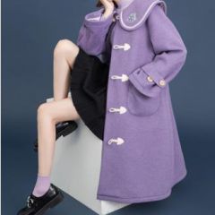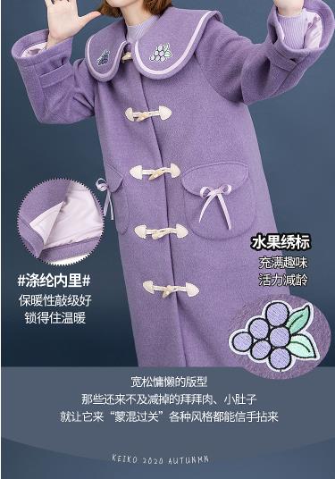 娃娃领牛角扣毛呢外套女冬加厚2020秋冬新气质紫色呢子大衣中长款