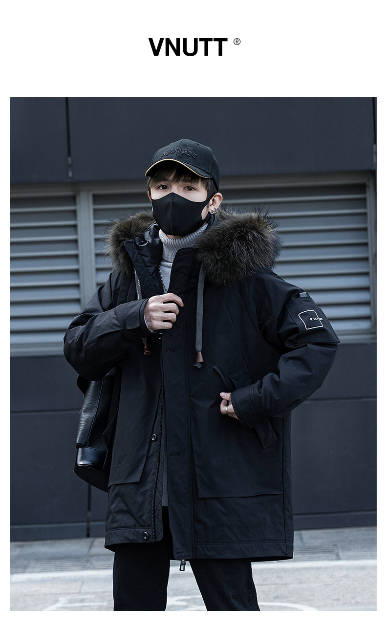 大毛领中长款羽绒服男士2020年冬季新款加厚潮流宽松帅气连帽外套