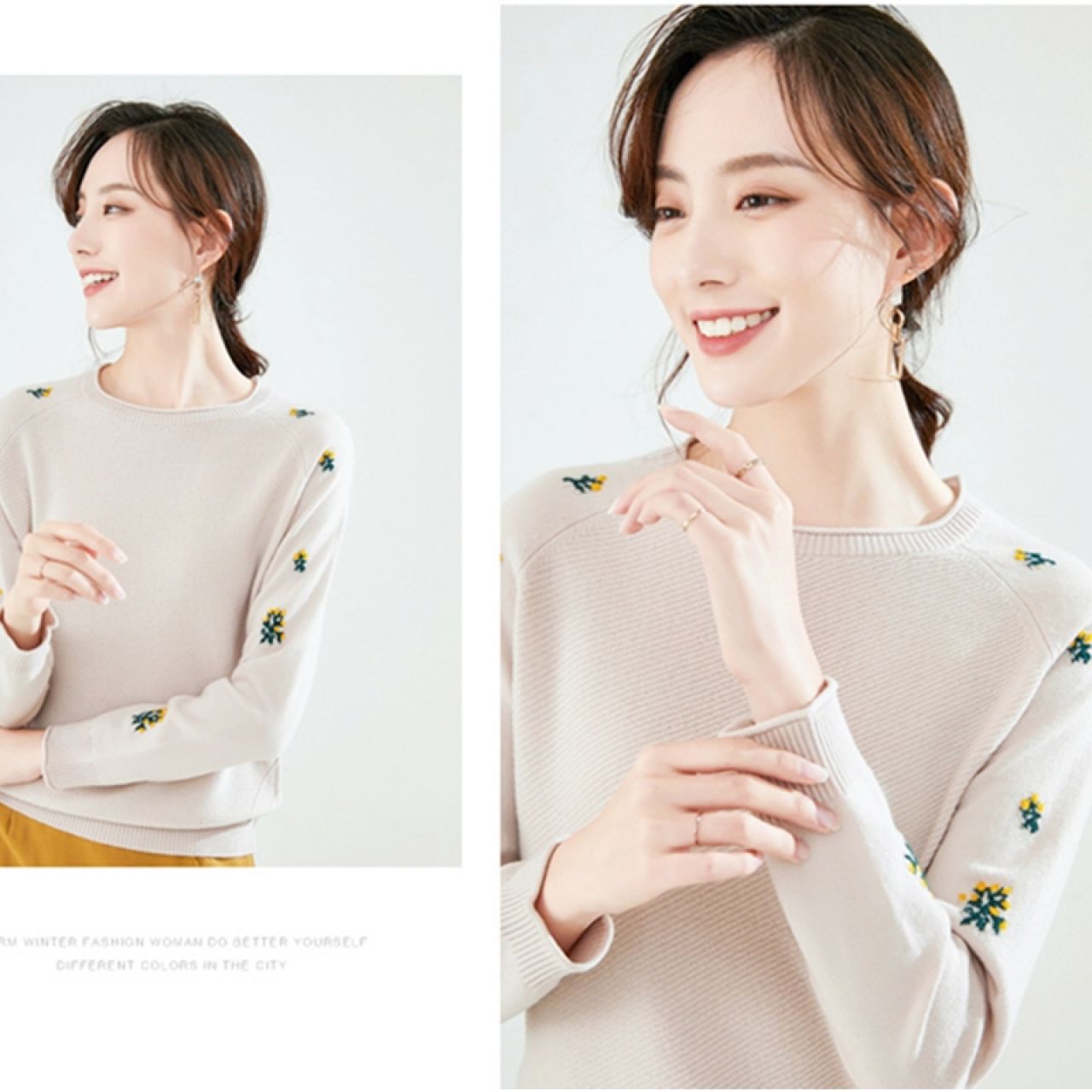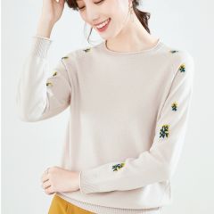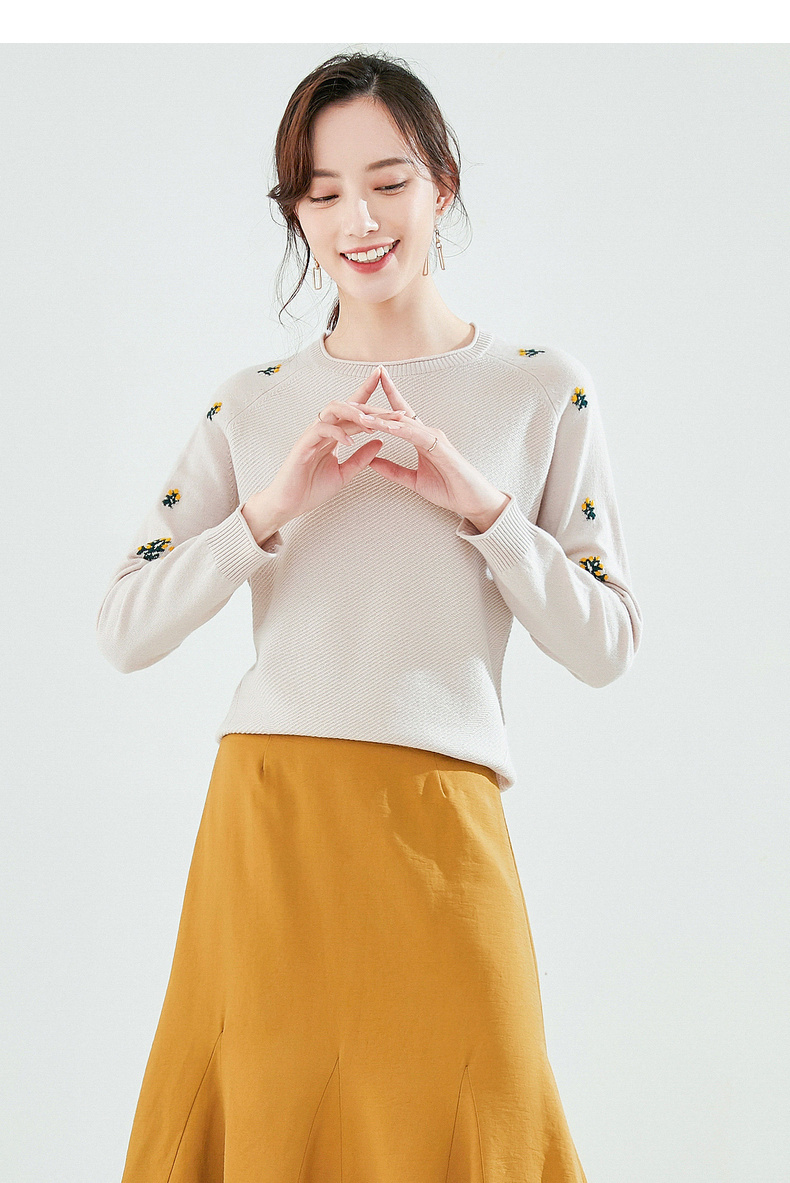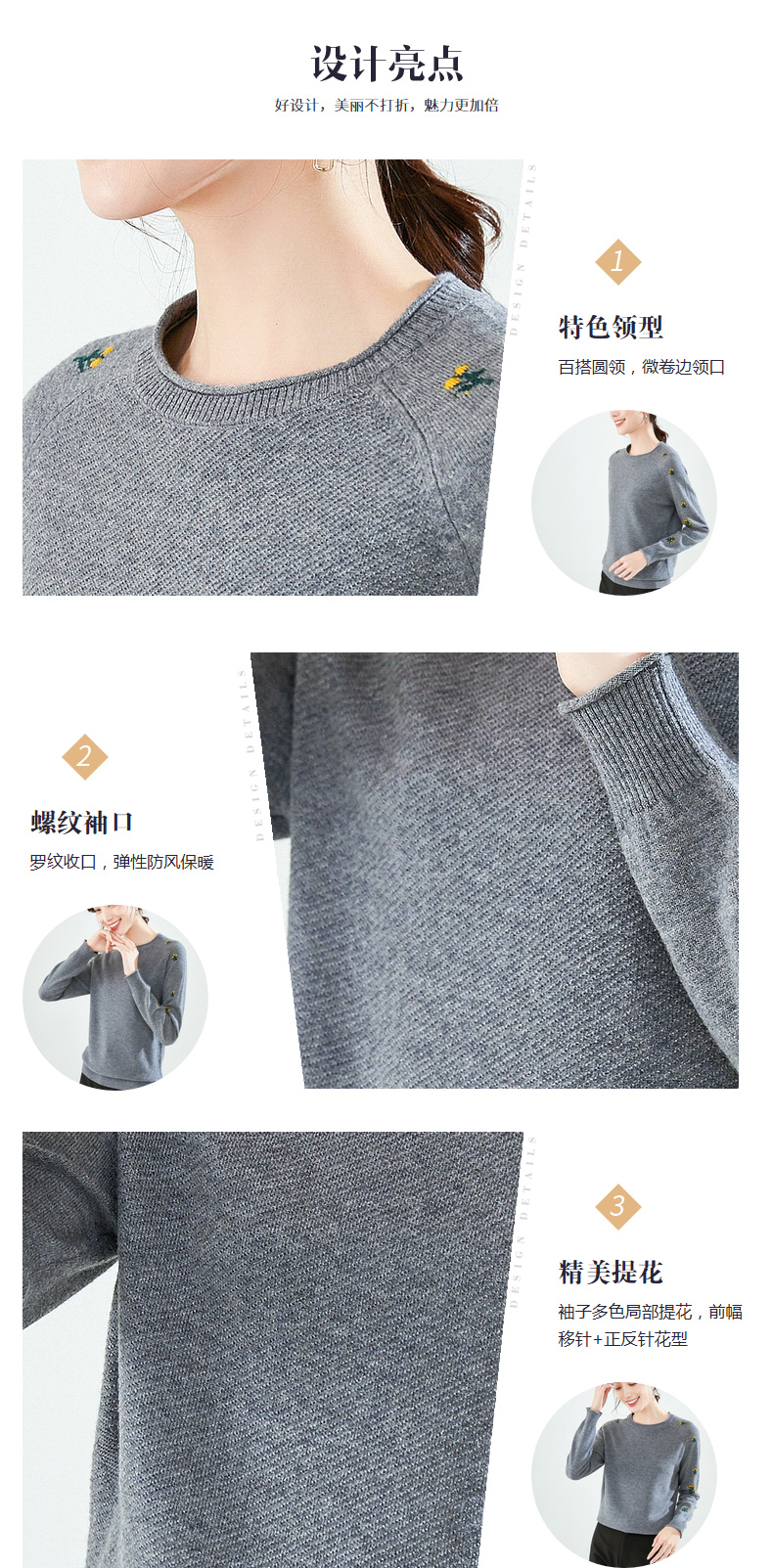 2020款秋冬新款纯羊毛衫女装套头圆领提花毛衣针织衫