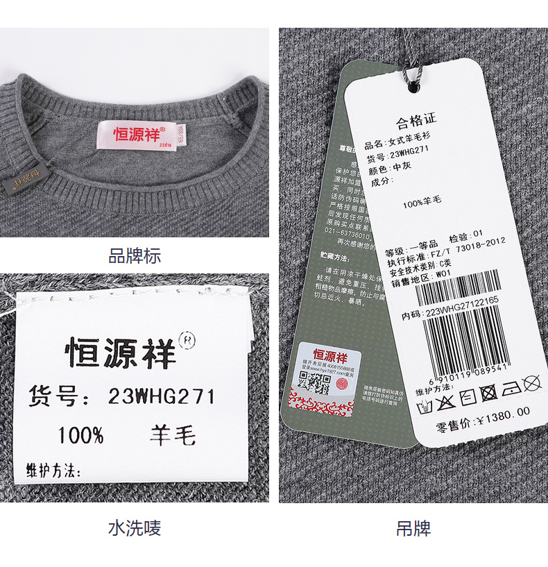 恒源祥2020秋冬新款纯羊毛衫女装套头圆领提花毛衣针织衫打底上衣