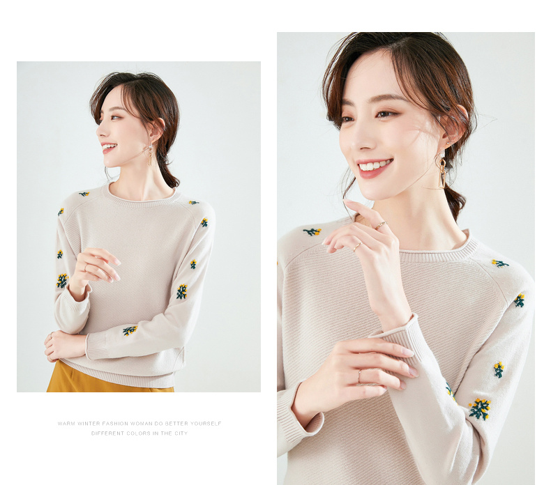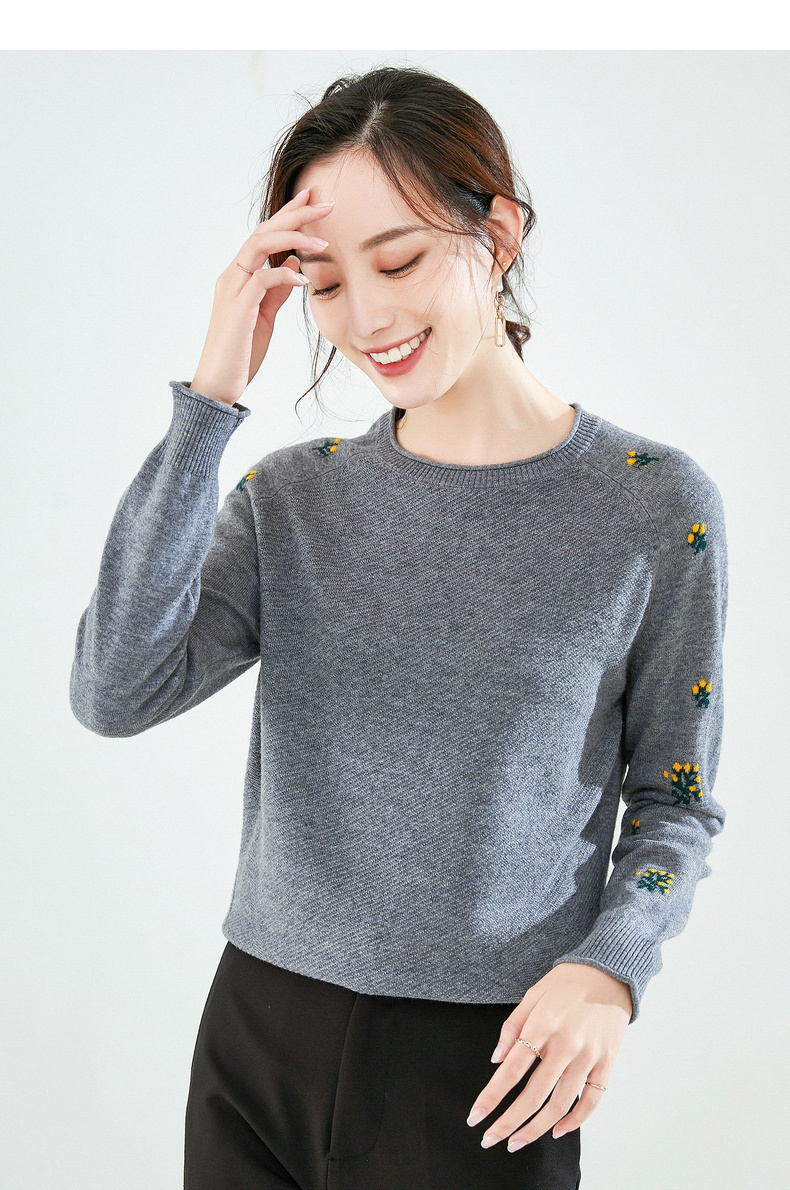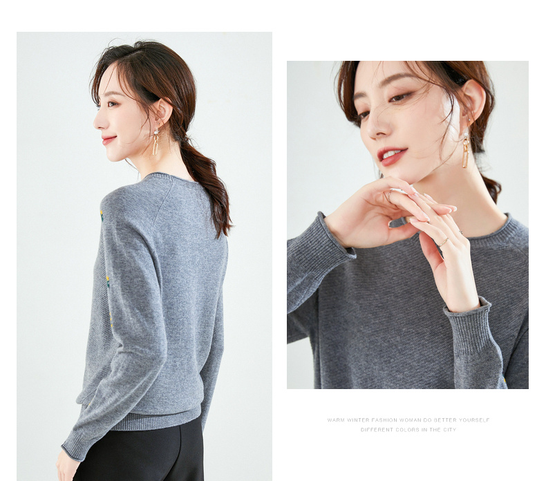 2020秋冬新款纯羊毛衫女装套头圆领提花毛衣针织衫
