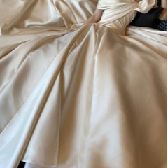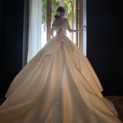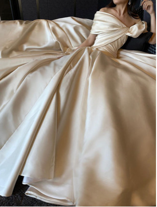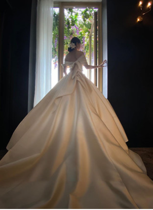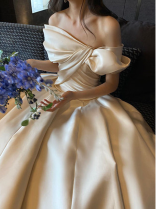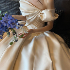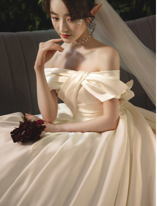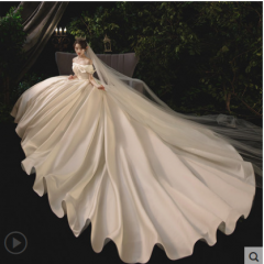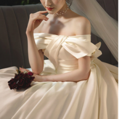《素月》缎面主婚纱2020新款 新娘小个子气质拖尾简约一字肩法式