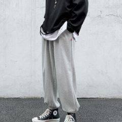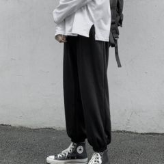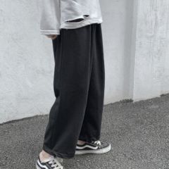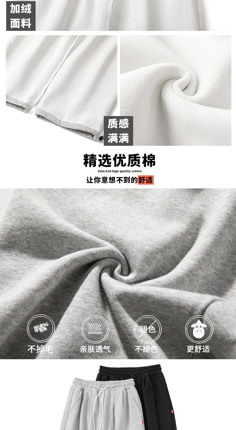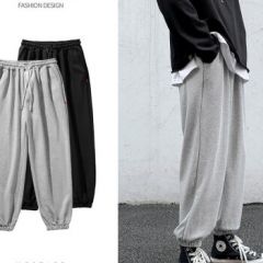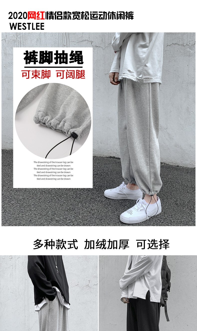 裤子男秋冬季新款加绒卫裤男士直筒阔腿哈伦运动九分裤港风宽松抽绳束脚休闲裤男 S M L XL 2XL