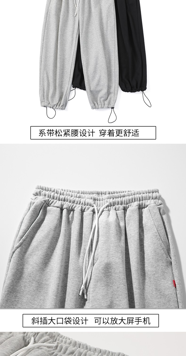 裤子男秋冬季新款加绒卫裤男士直筒阔腿哈伦运动九分裤港风宽松抽绳束脚休闲裤男
