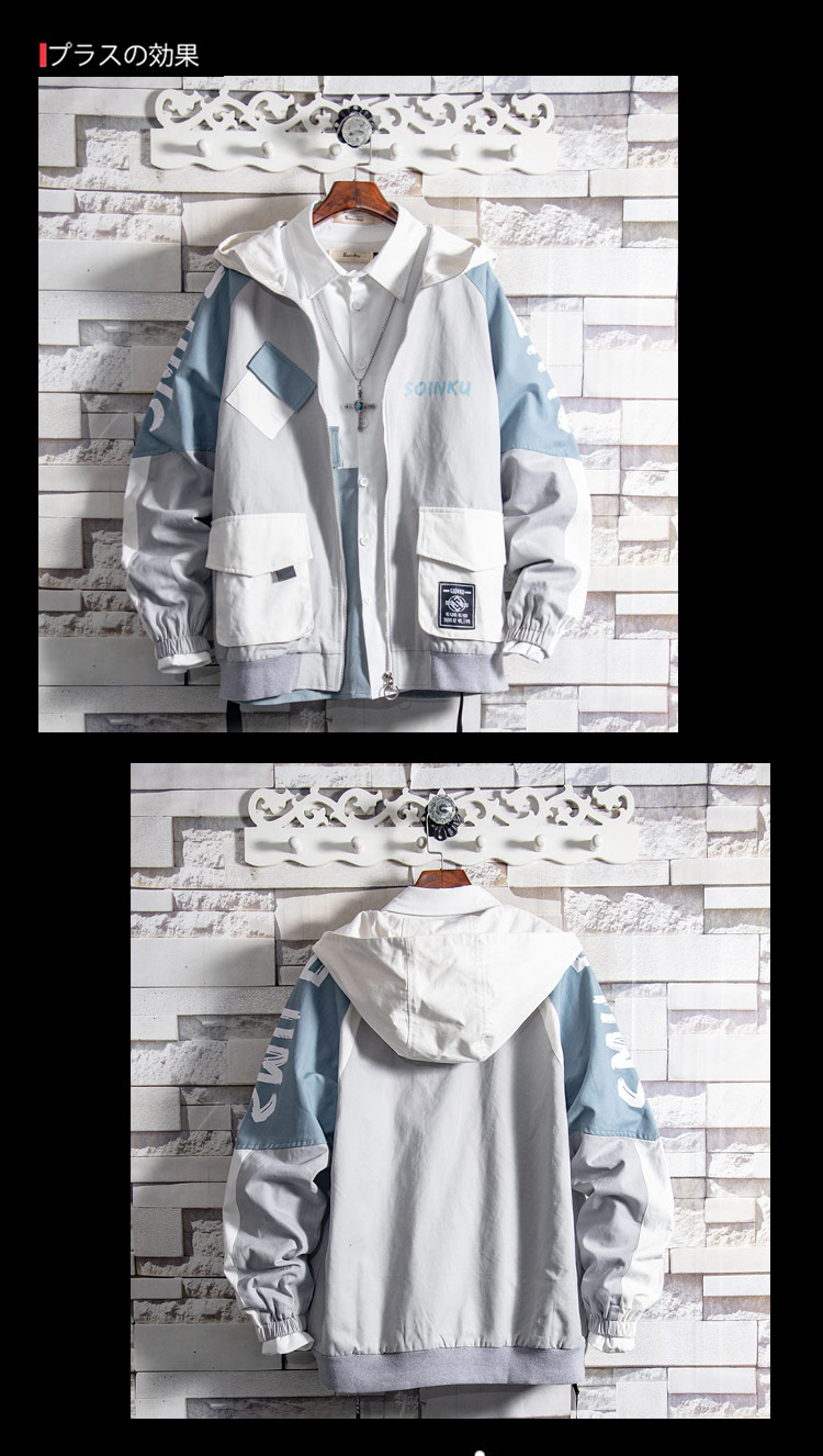 @易燃拼色连帽外套男夹克日系潮牌韩版帅气学生秋冬季工装男外套