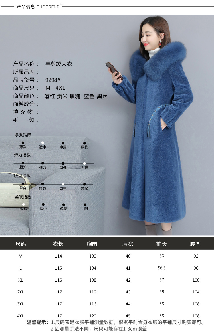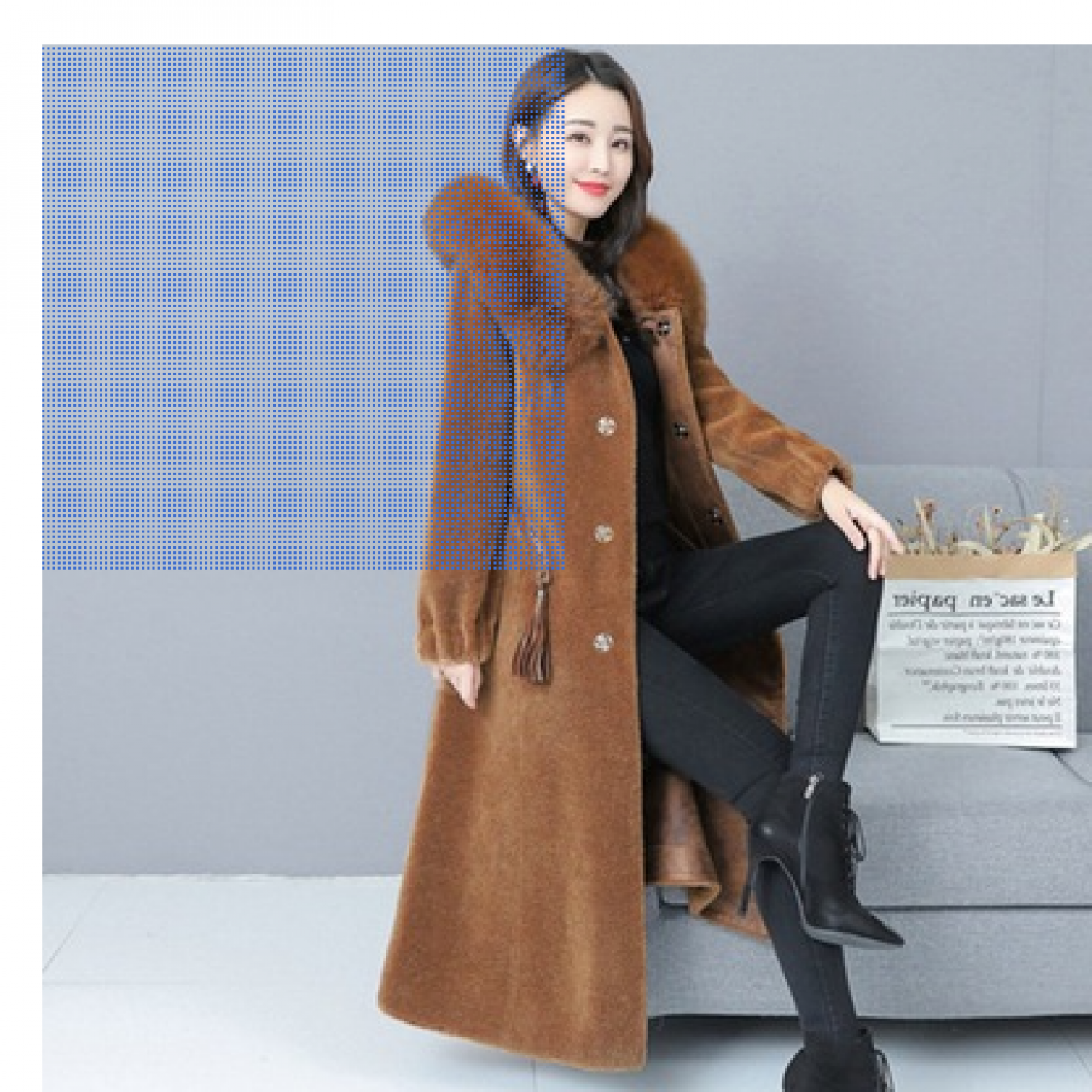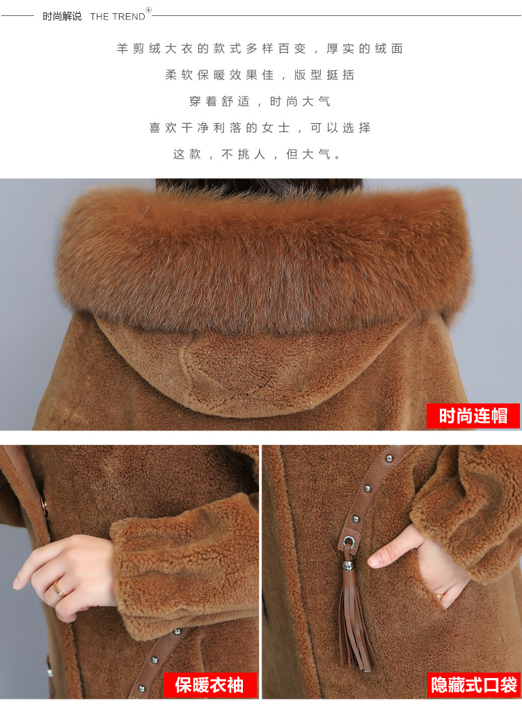 羊绒大衣2020新款海宁颗粒羊剪绒中长款保暖连帽高仿狐狸毛领女装