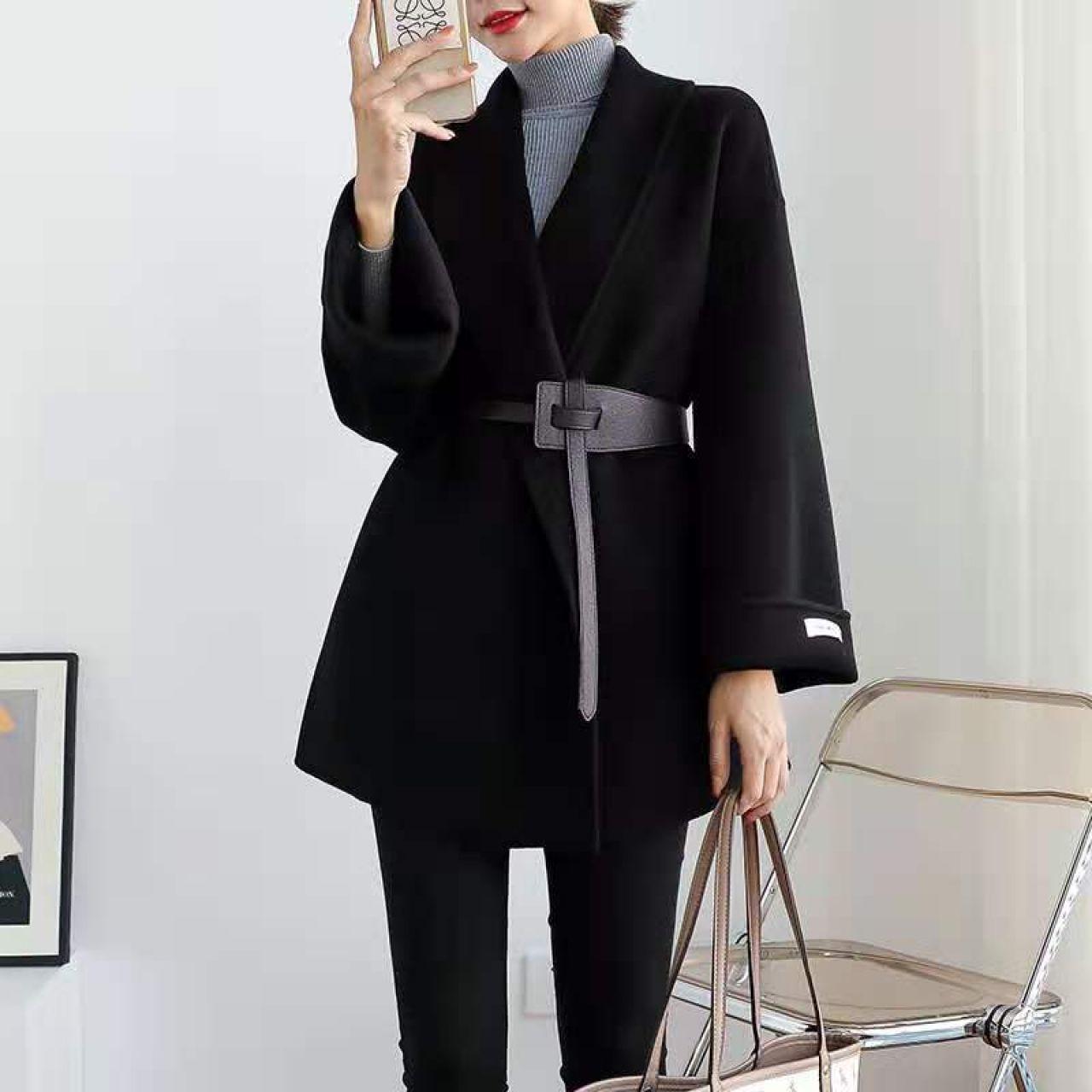 双面羊绒大衣女中长款2020冬季新款黑色显瘦小个子斗篷型毛呢外套