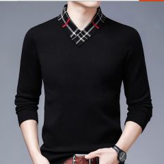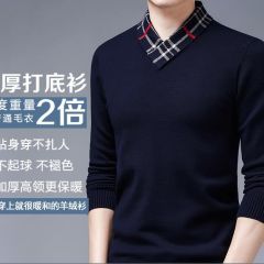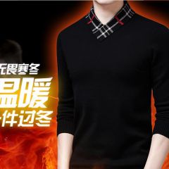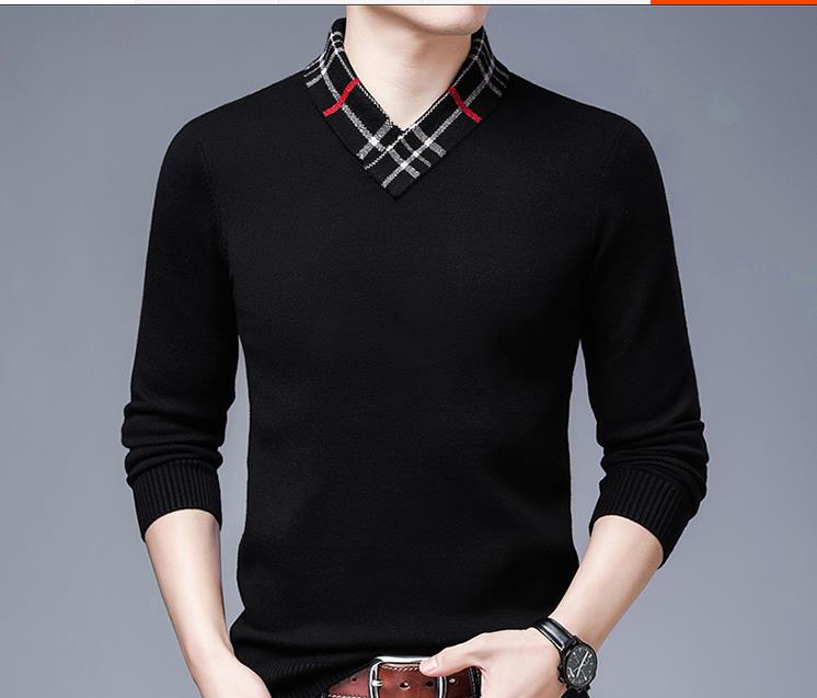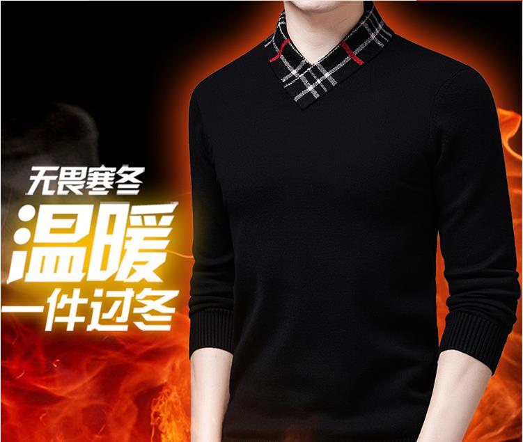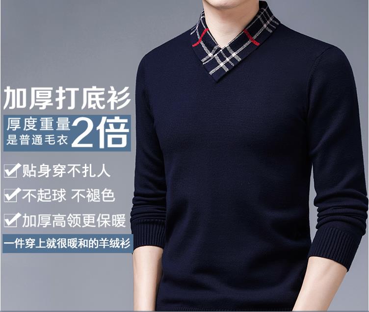 恒源祥%100羊绒衫男士毛衣秋冬羊毛打底衫潮流时尚男装针织上衣厚 黑 xi