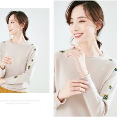 2020秋冬新款纯羊毛衫女装套头圆领提花毛衣针织衫打底上衣