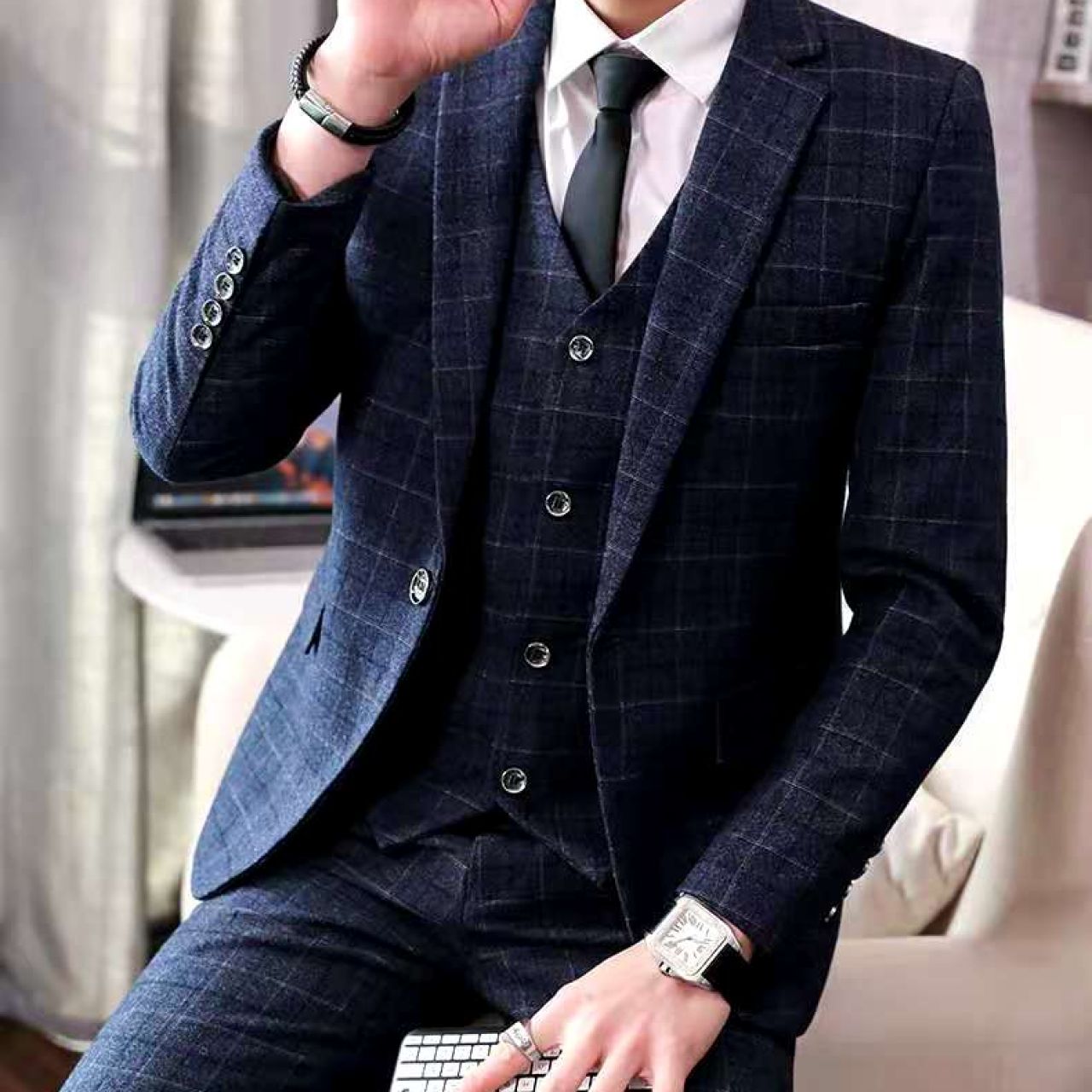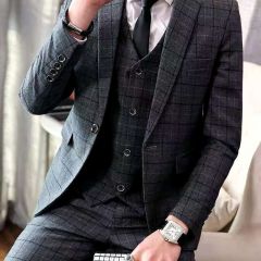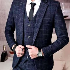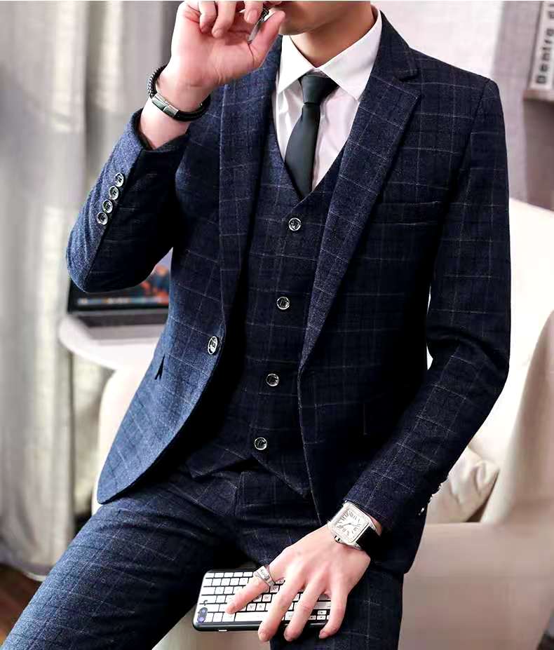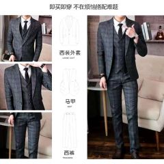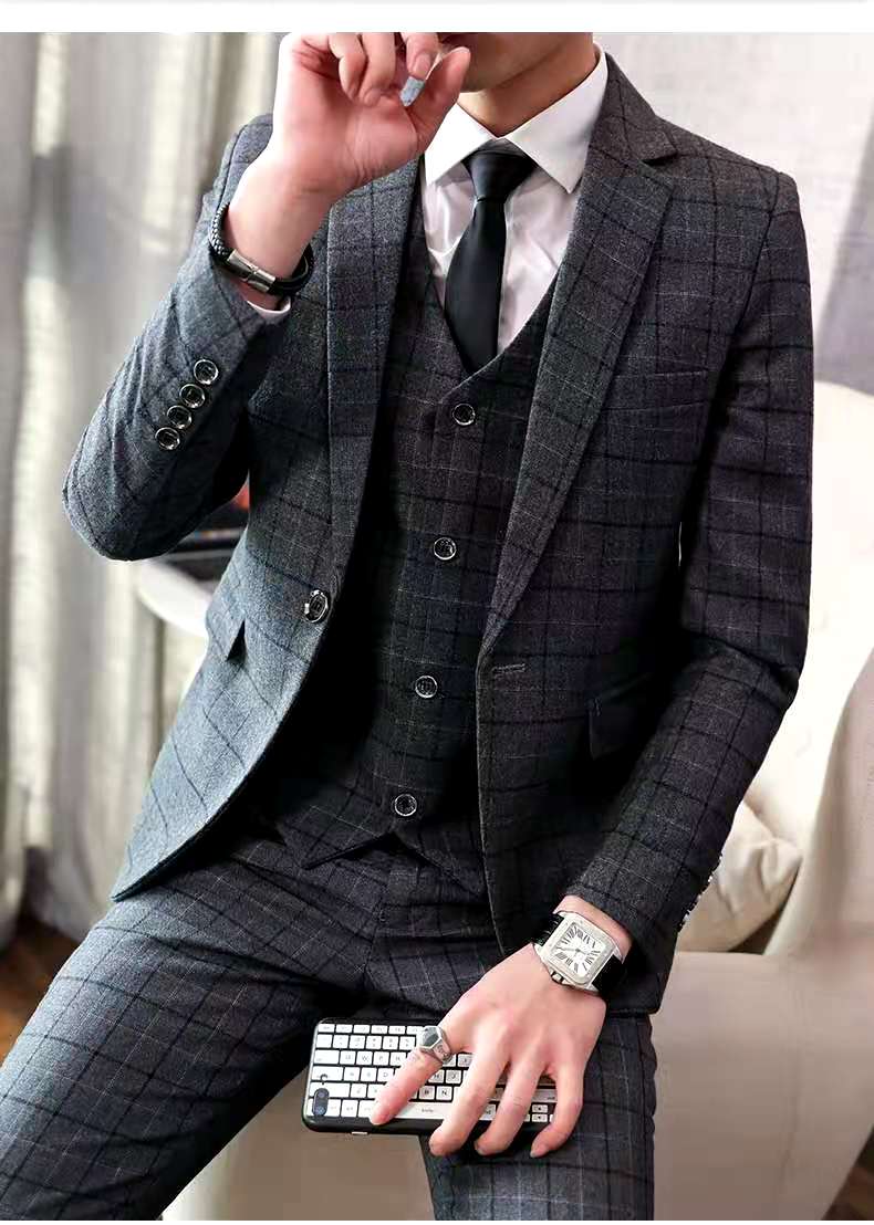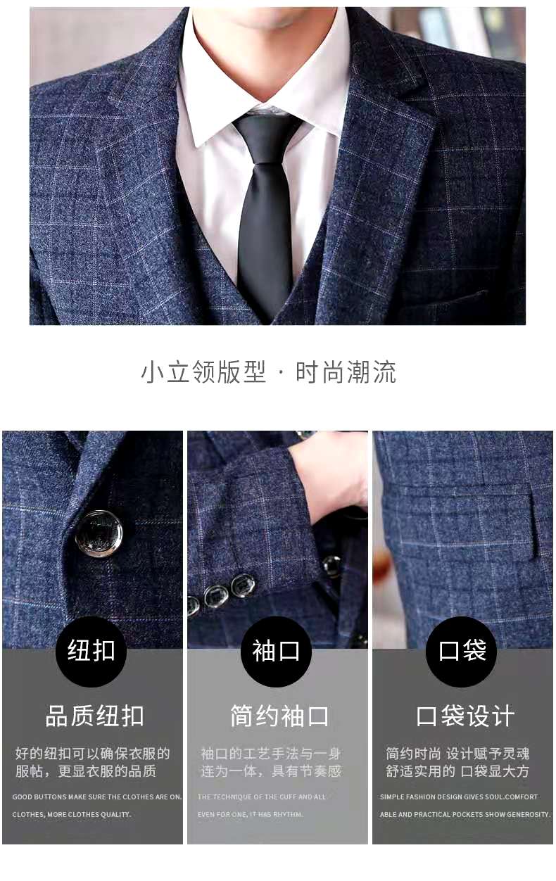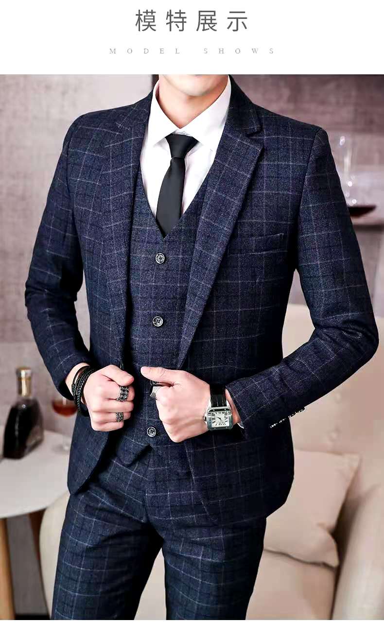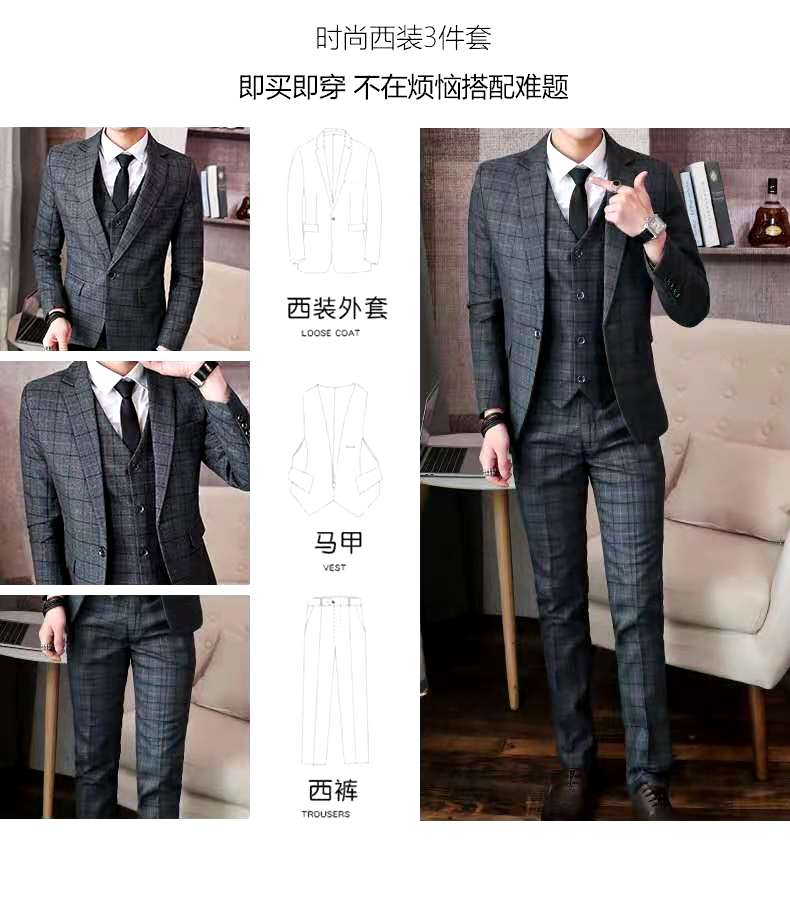 休闲青年英伦风西装修身男士西服套装三件套韩版结婚新郎礼服帅气