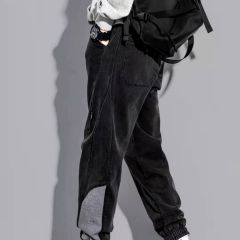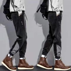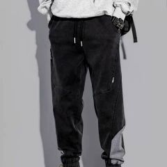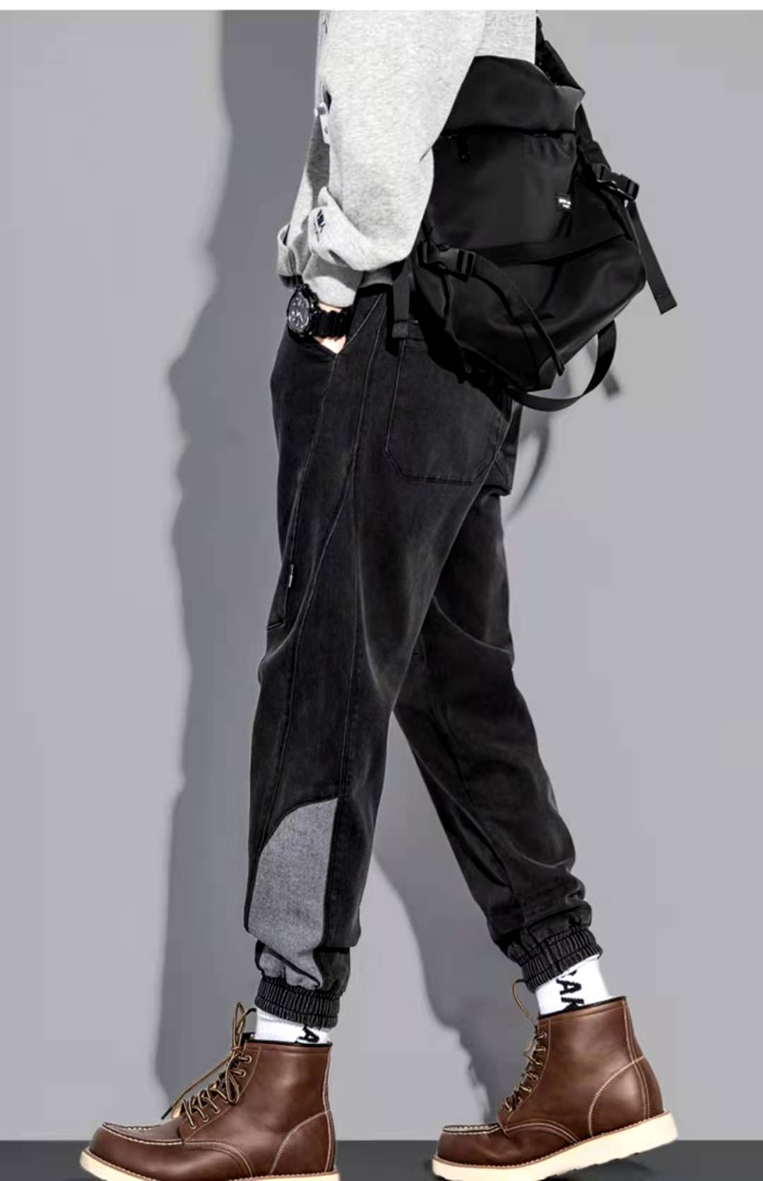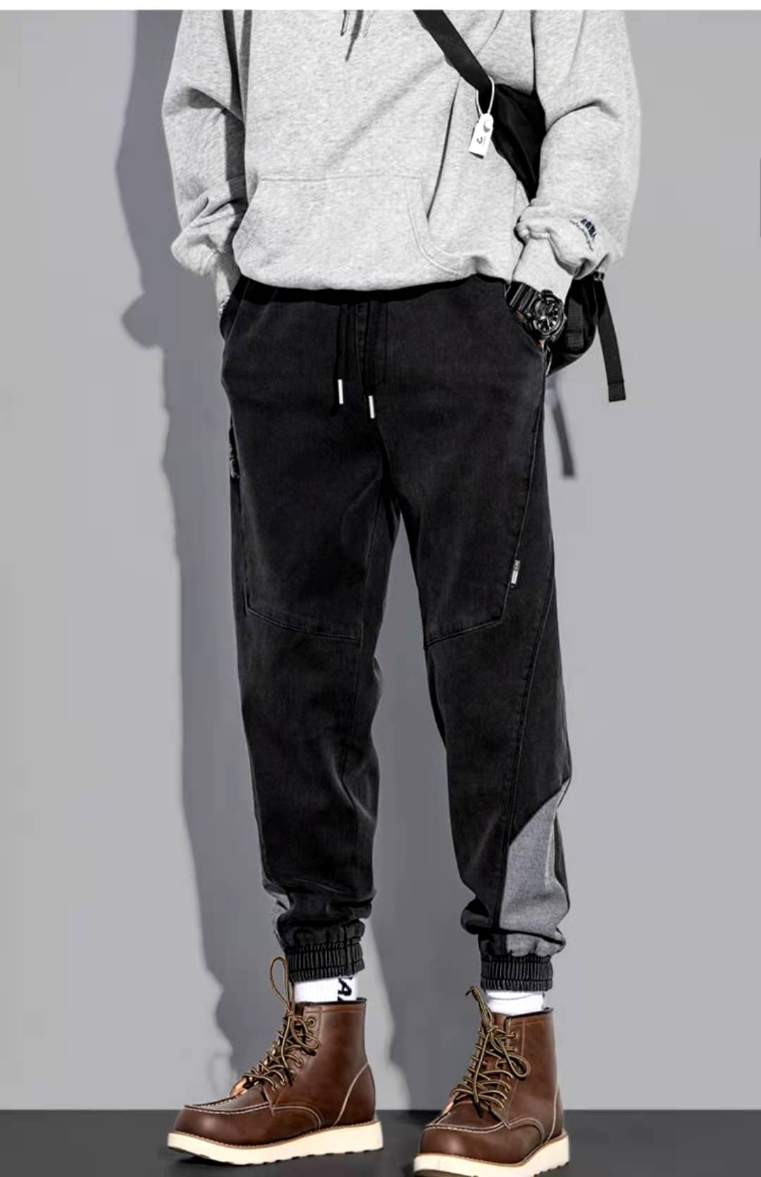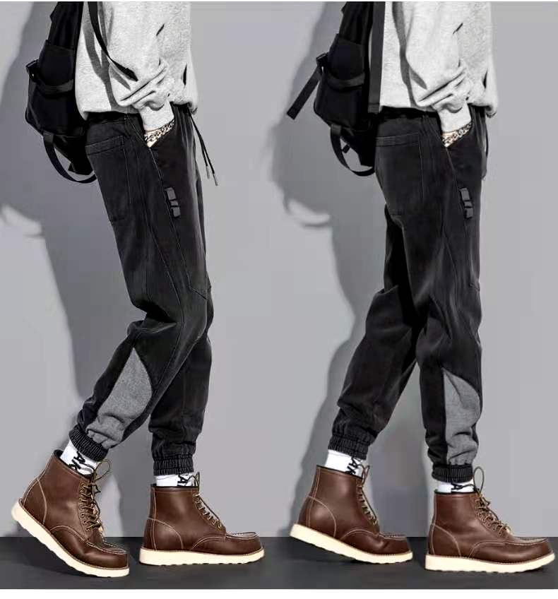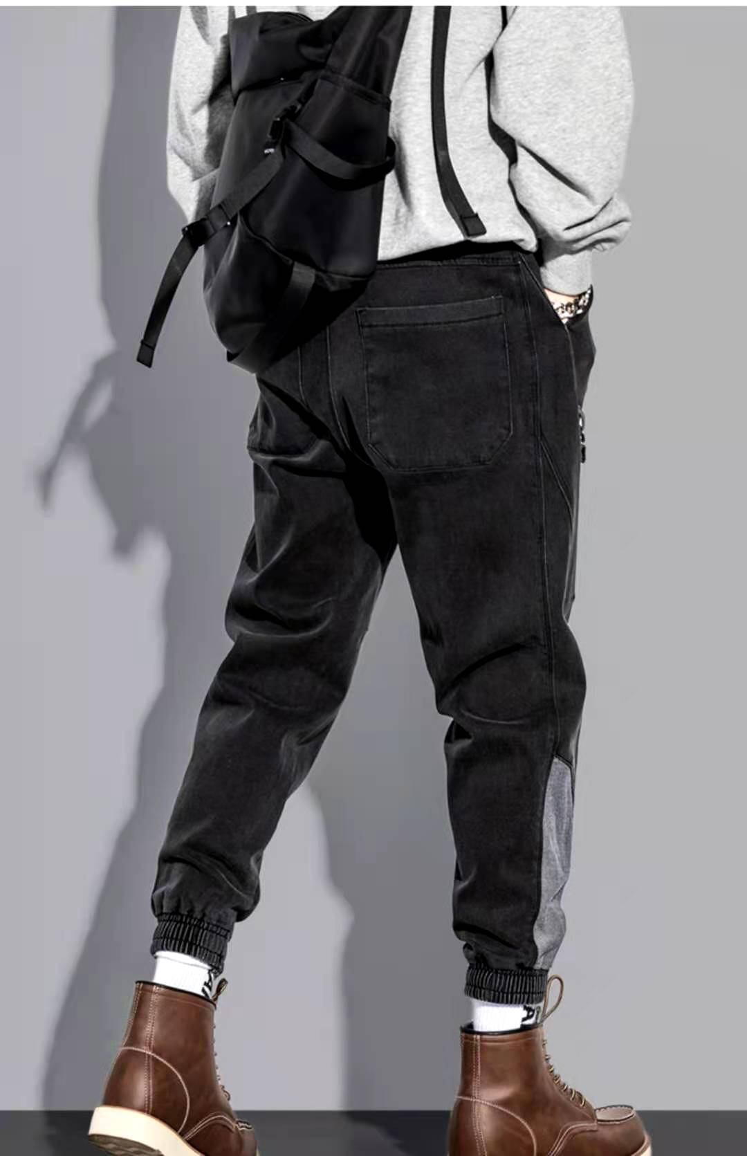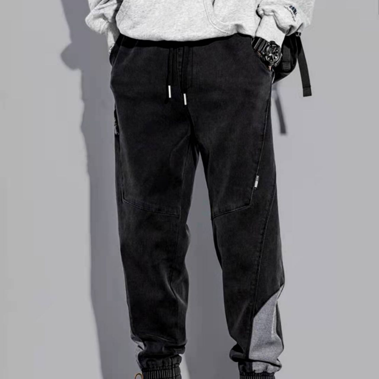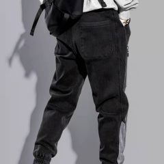YOA秋冬季新款牛仔裤男潮牌宽松嘻哈束脚裤韩版加绒休闲工装裤子