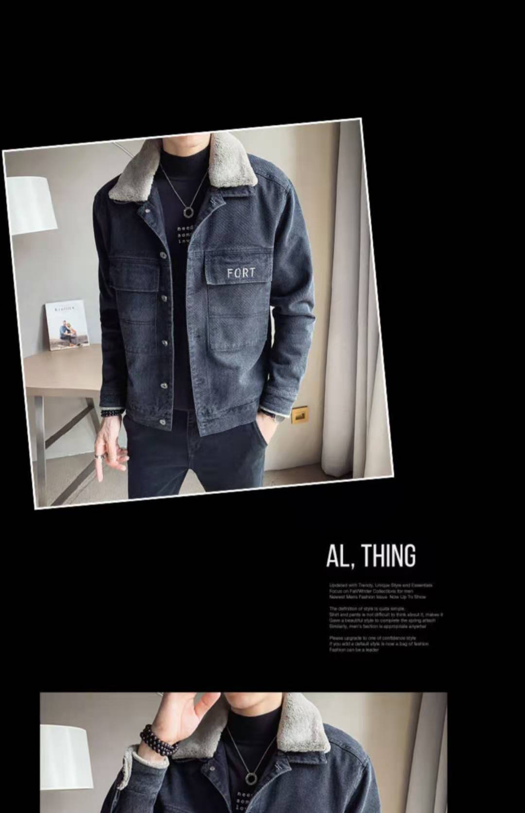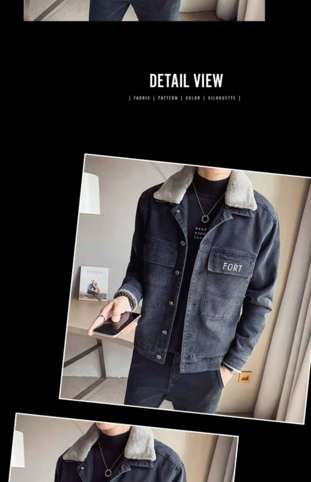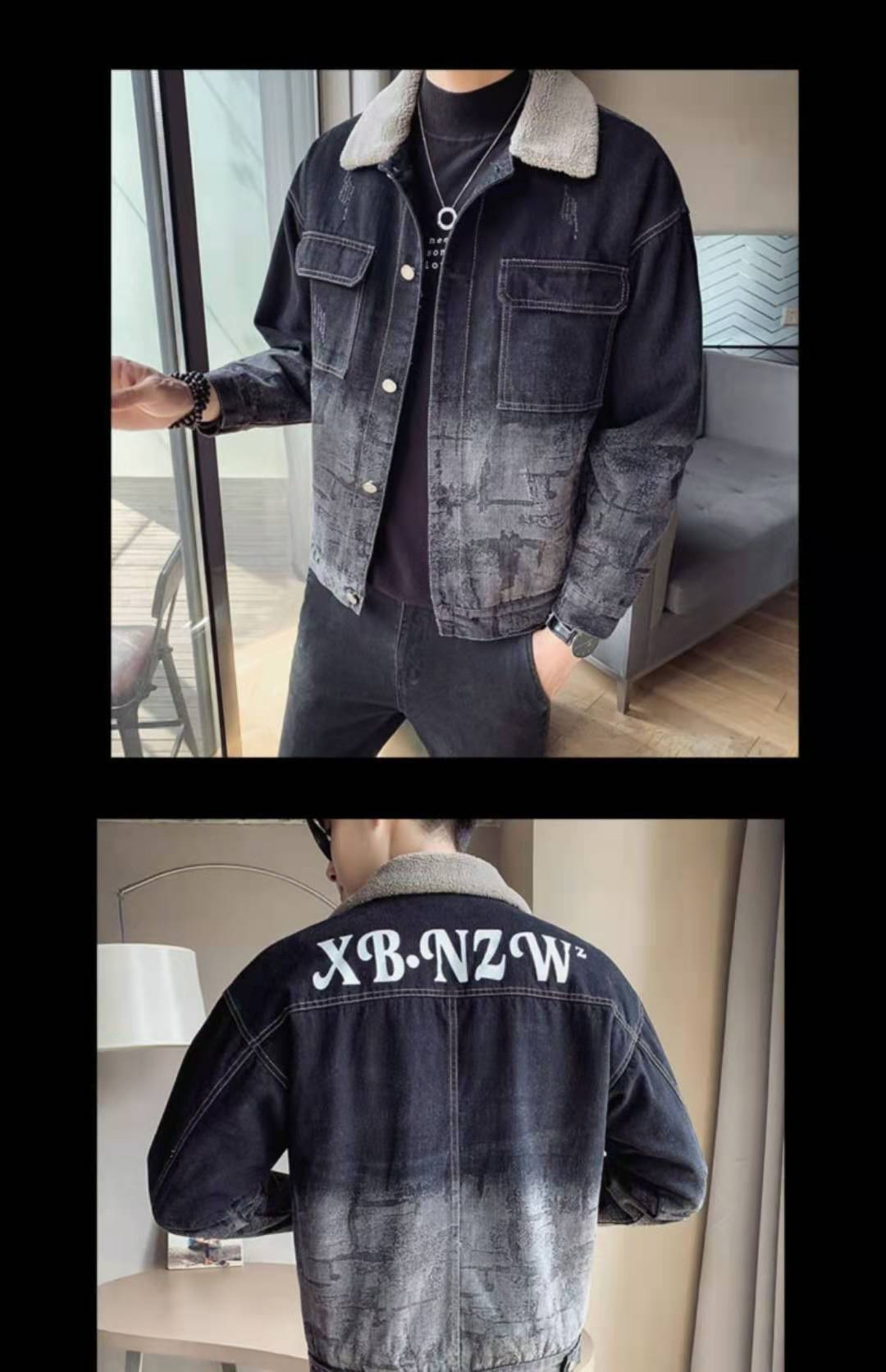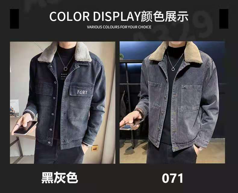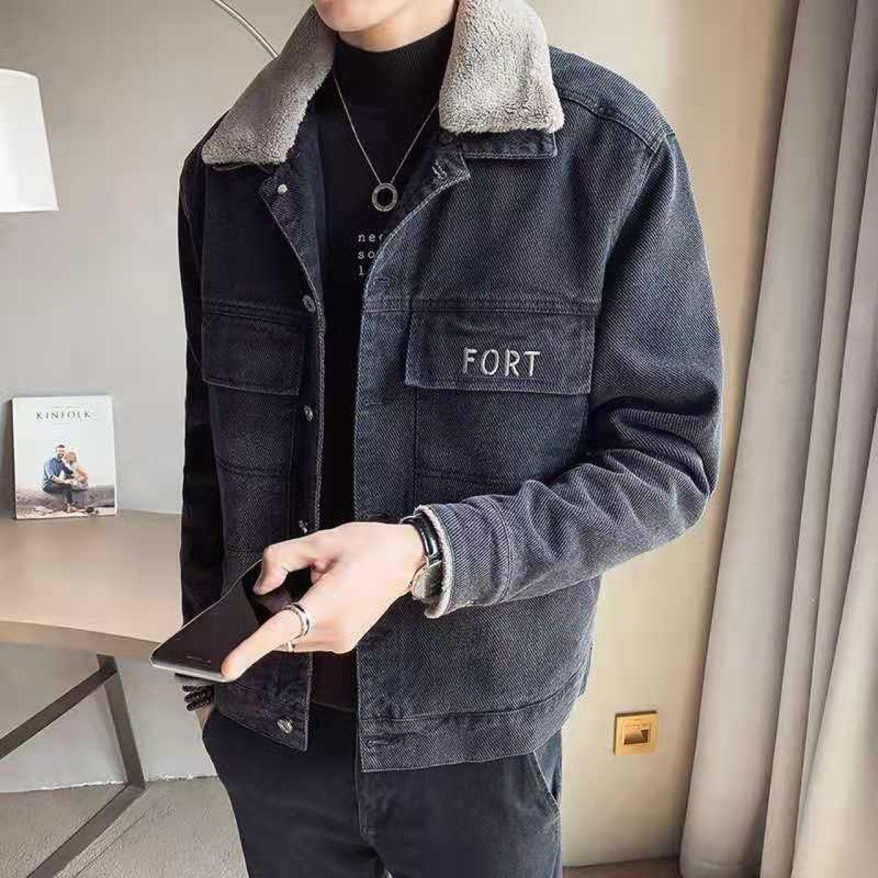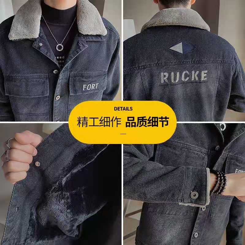 加绒加厚牛仔外套男秋冬季韩版潮流百搭羊羔毛领夹克男秋装上衣服包邮
