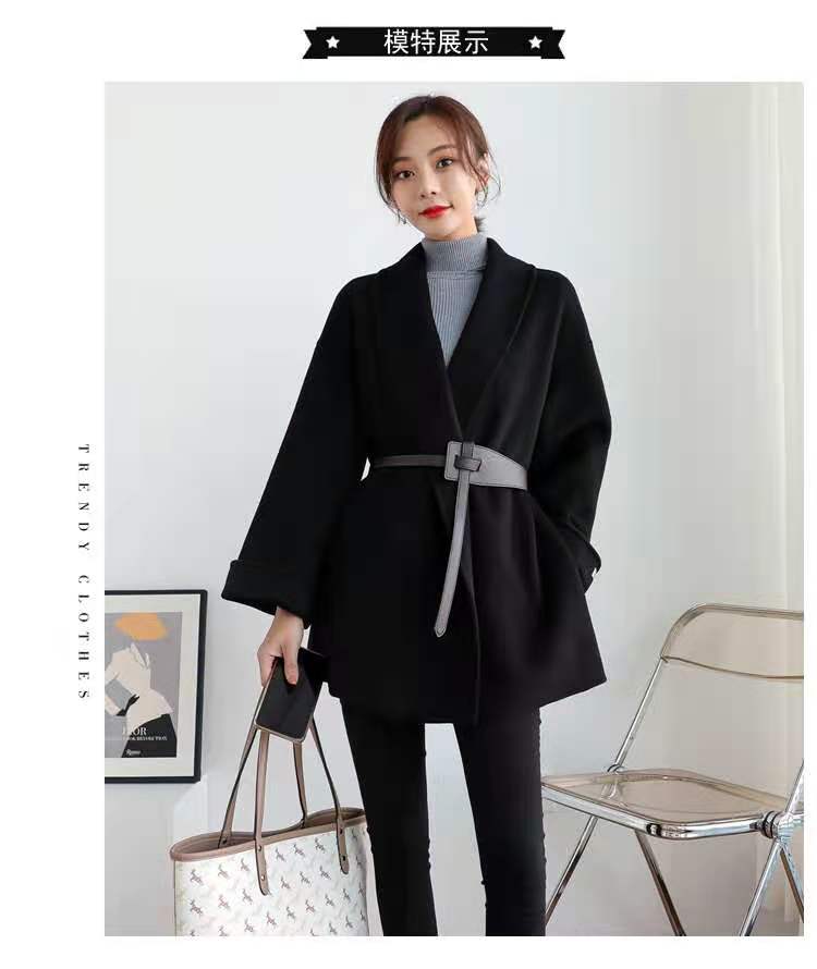 双面羊绒大衣女中长款2020冬季新款黑色显瘦小个子斗篷型毛呢外套包邮