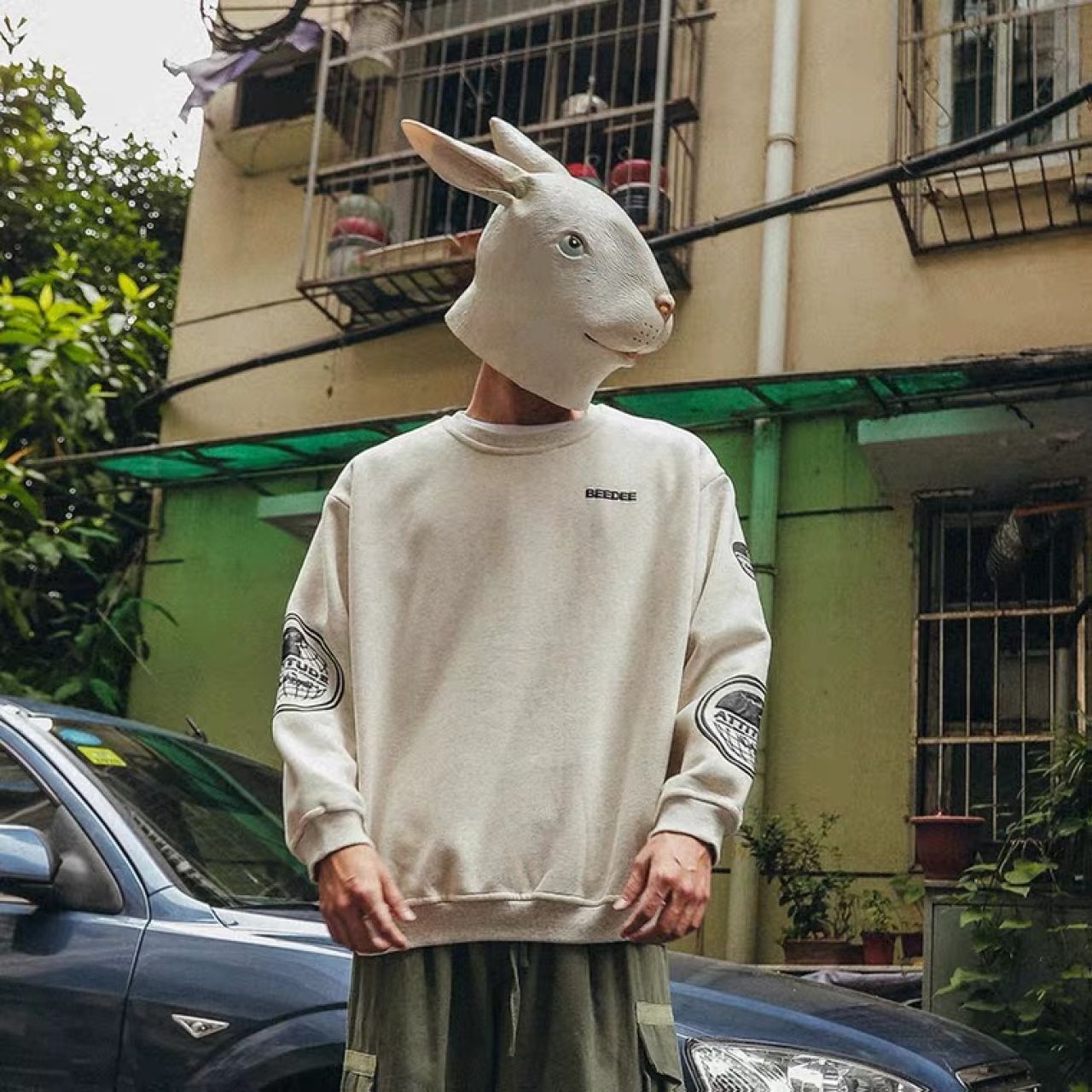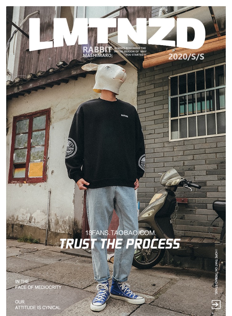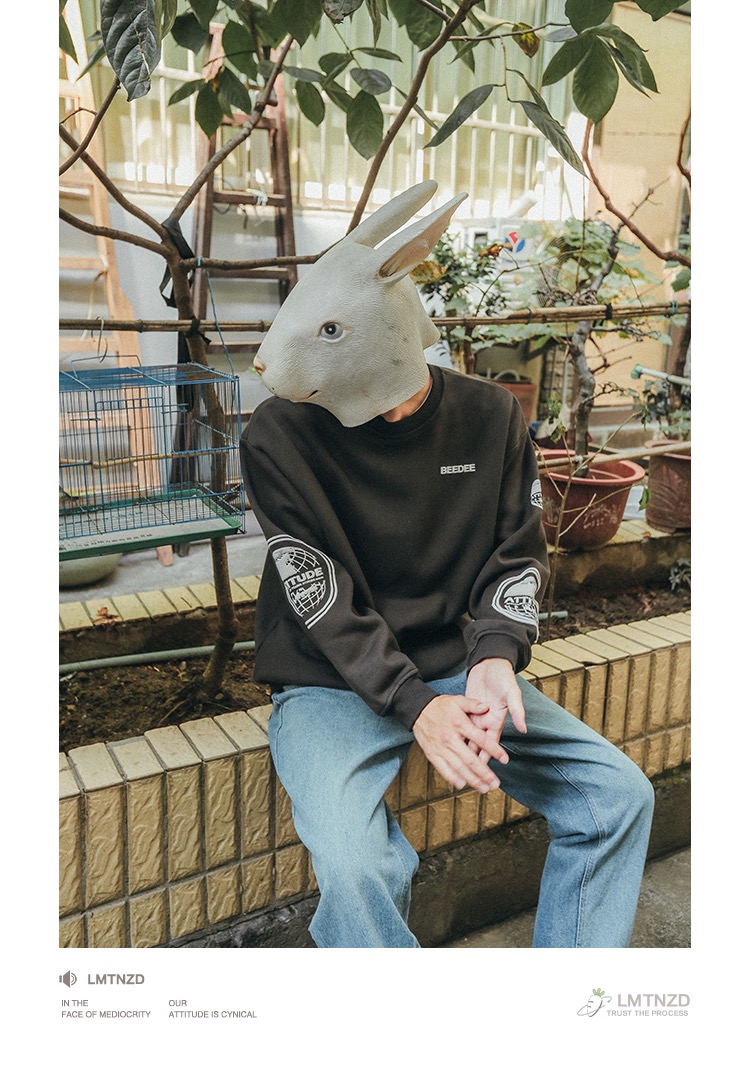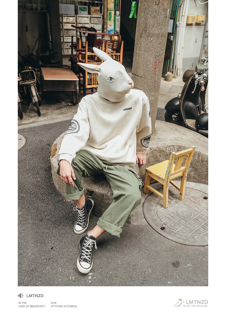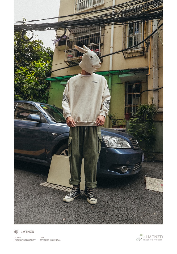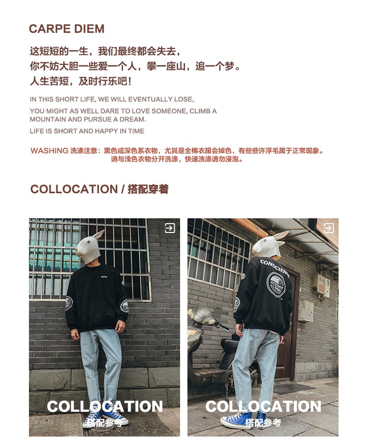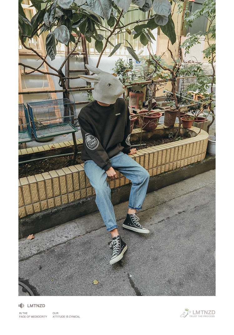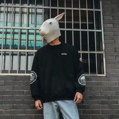 LMTNZD秋冬季圆领卫衣男士加绒加厚美式印花潮流宽松百搭套头上衣