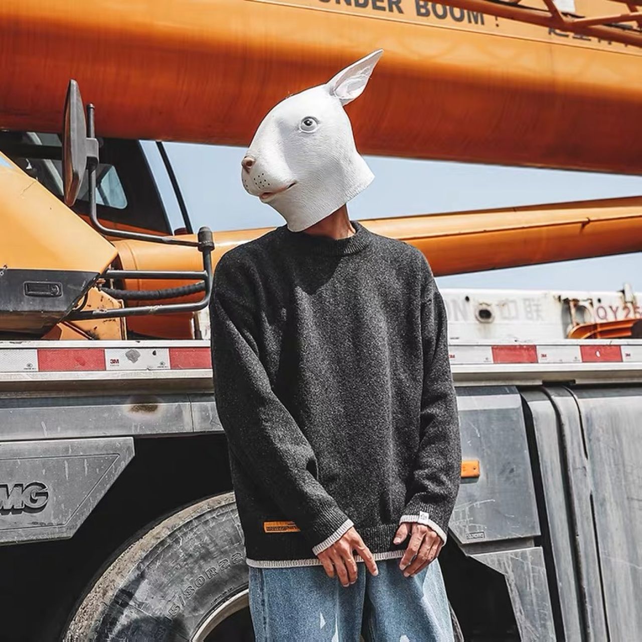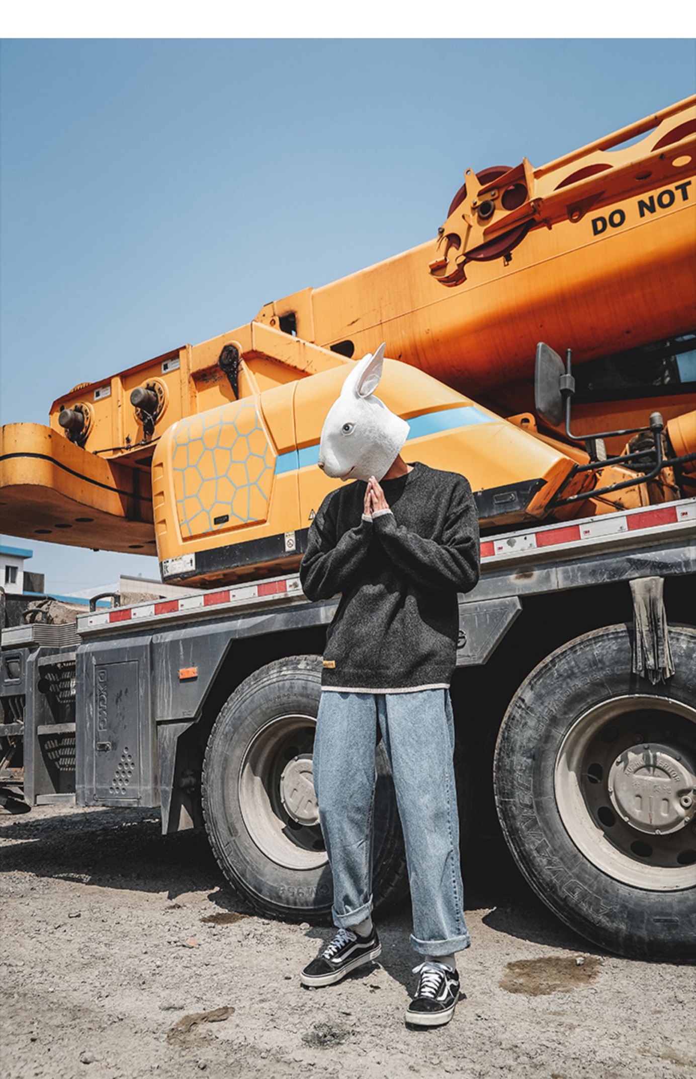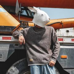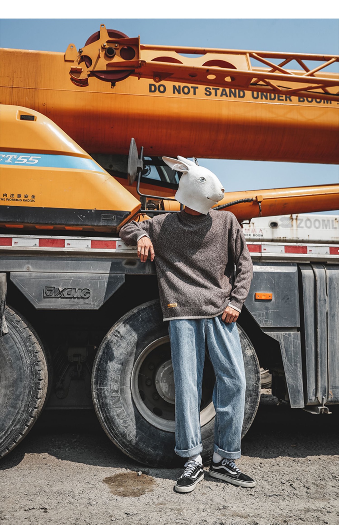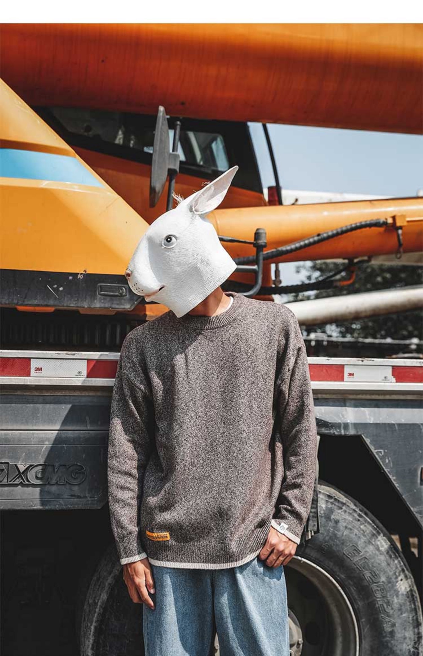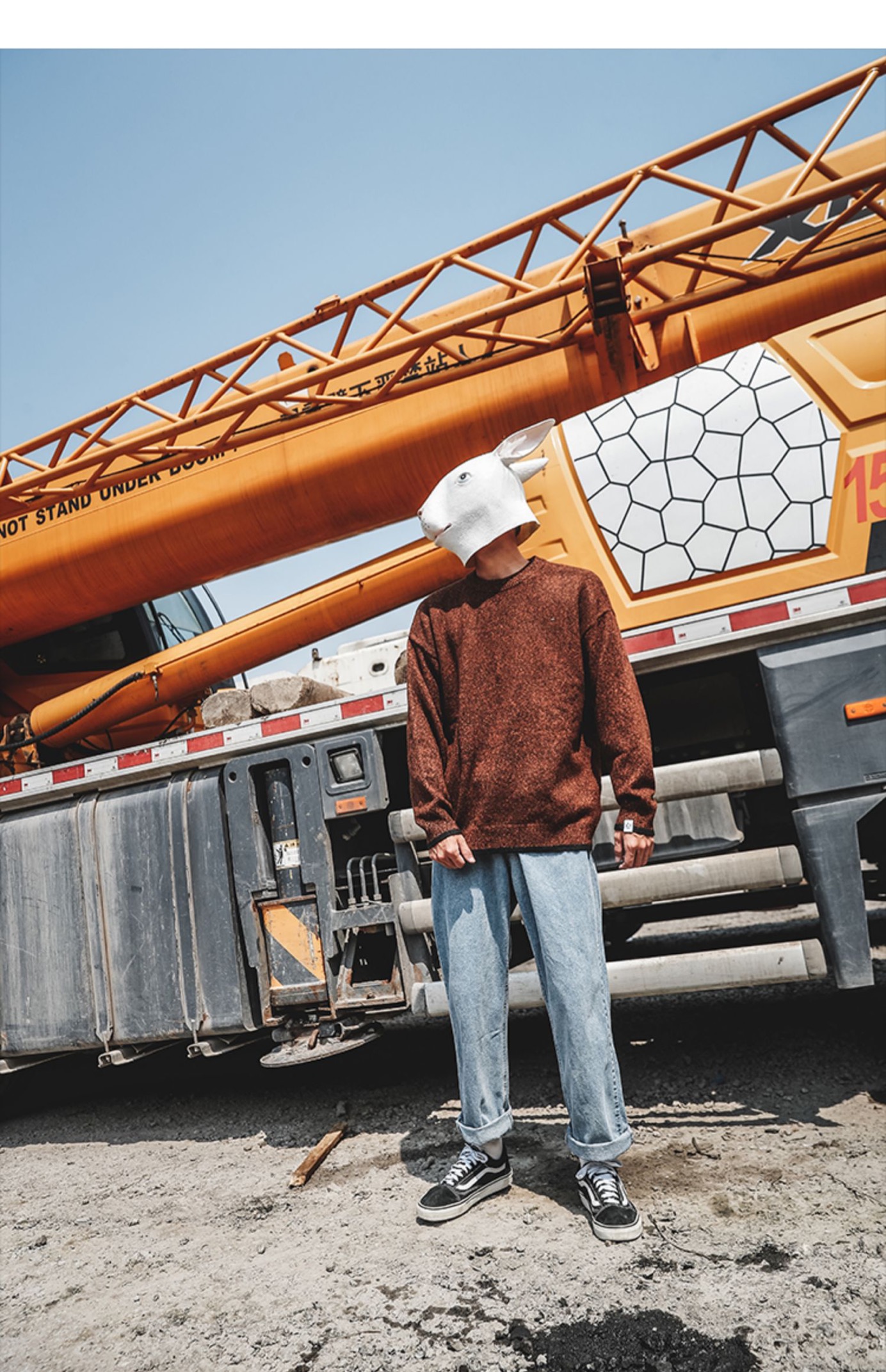 LMTNZD假两件毛衣男秋冬韩版潮流加厚款毛线衣宽松保暖圆领针织衫