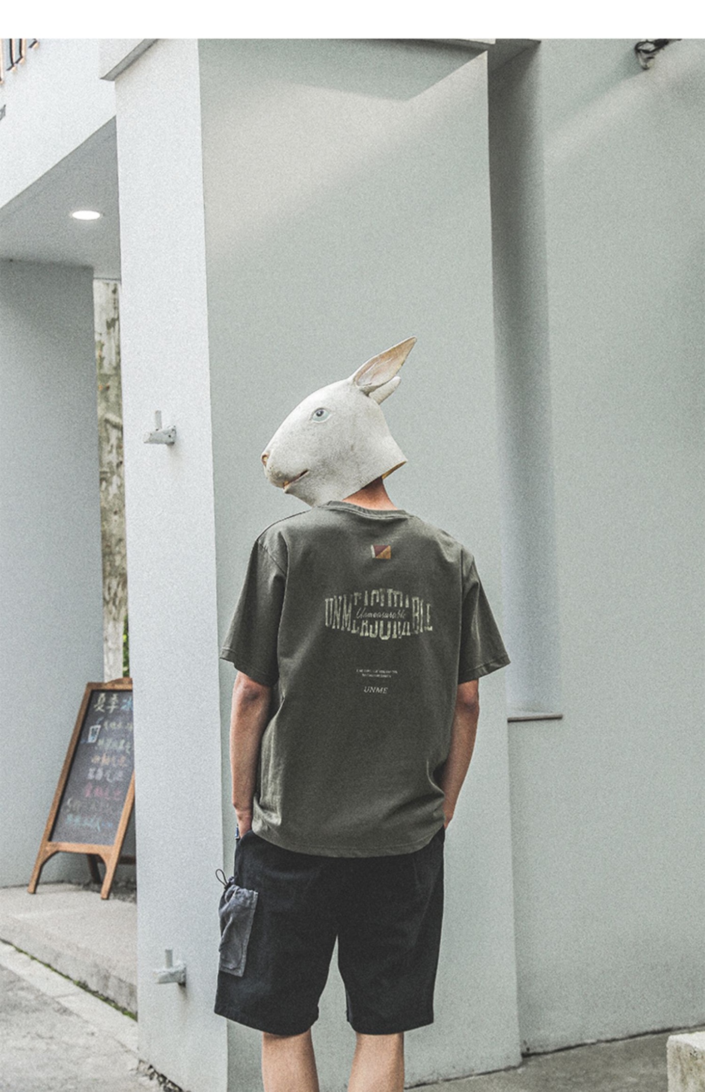 LMTNZD夏季新款圆领短袖T恤男士简约字母印花宽松潮流夏装上衣