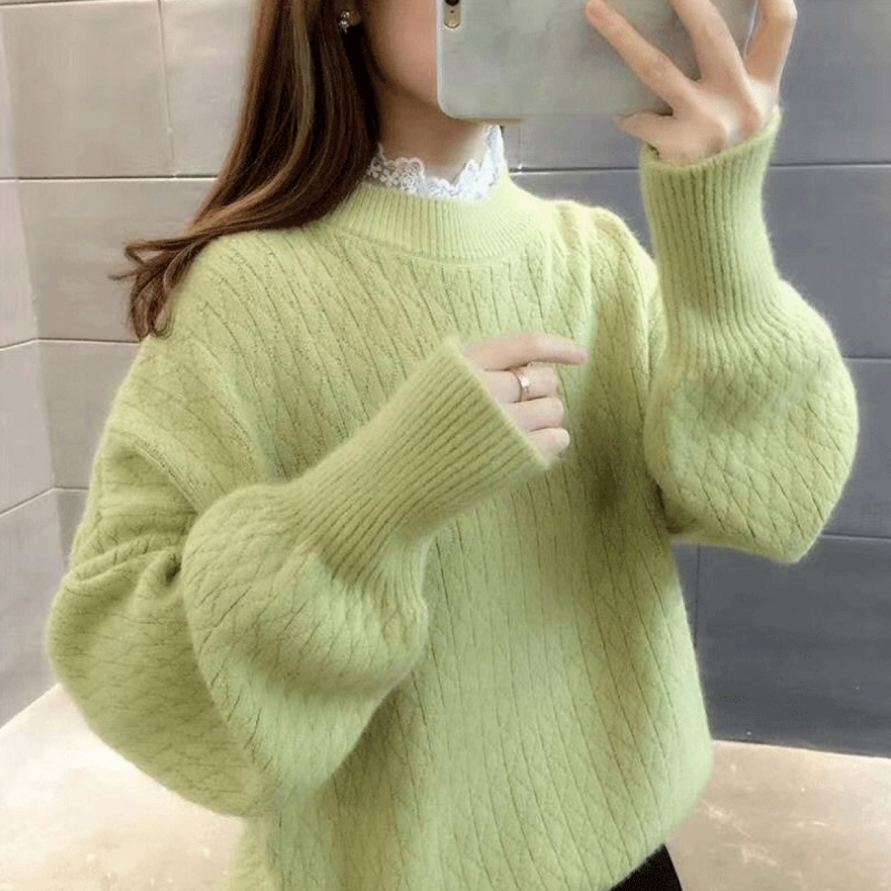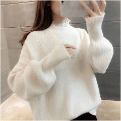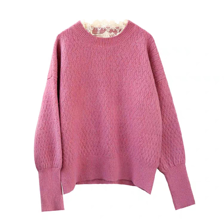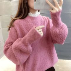 2020秋冬新款假两件蕾丝毛衣女慵懒风宽松百搭加厚套头打底针织衫