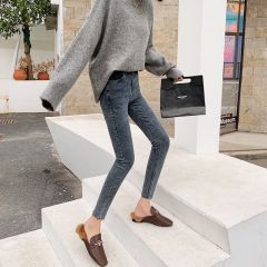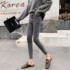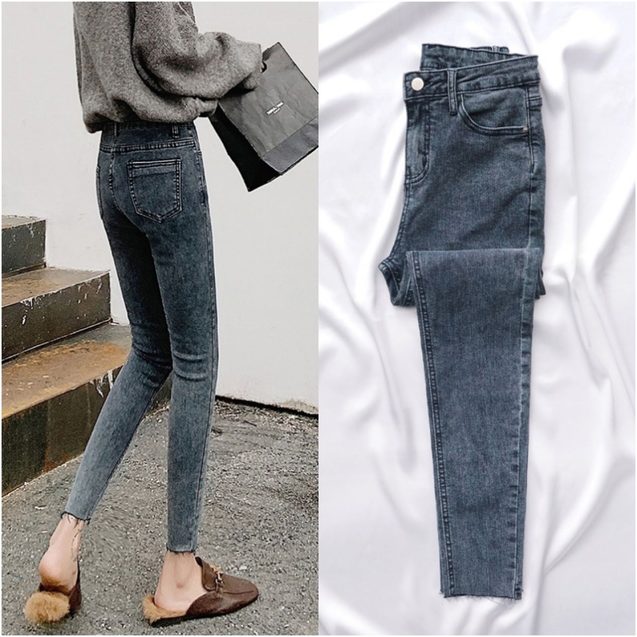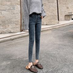 2020年秋冬新款高腰牛仔裤女加绒裤子九分紧身小脚铅笔裤显瘦修身