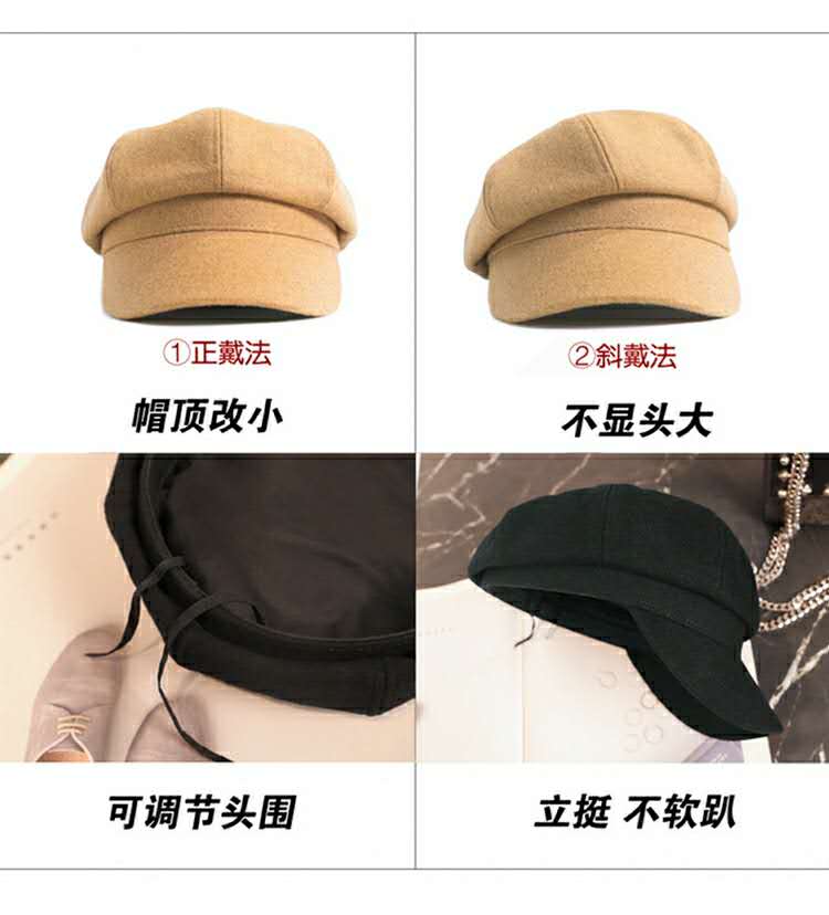 贝雷帽毛呢女秋冬韩版潮流网红款八角帽百搭英伦画家日系贝雷帽