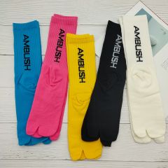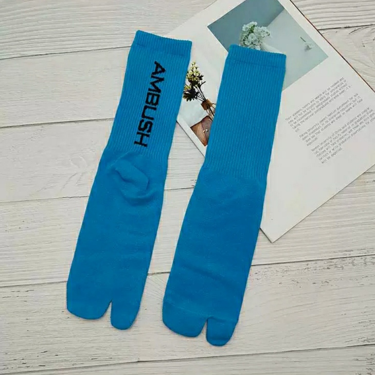 韩版人字拖袜子潮中筒夏季两指袜纯色韩版街头高筒日本分趾袜纯棉