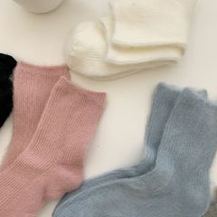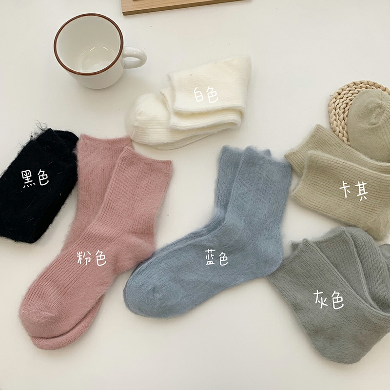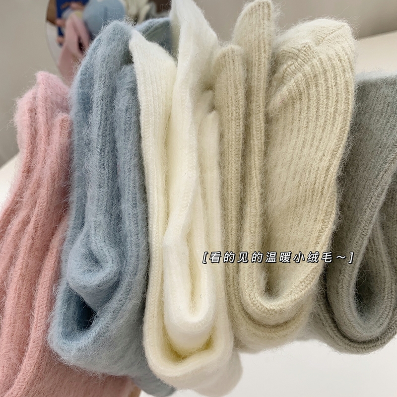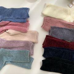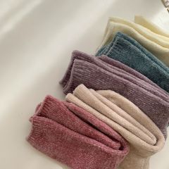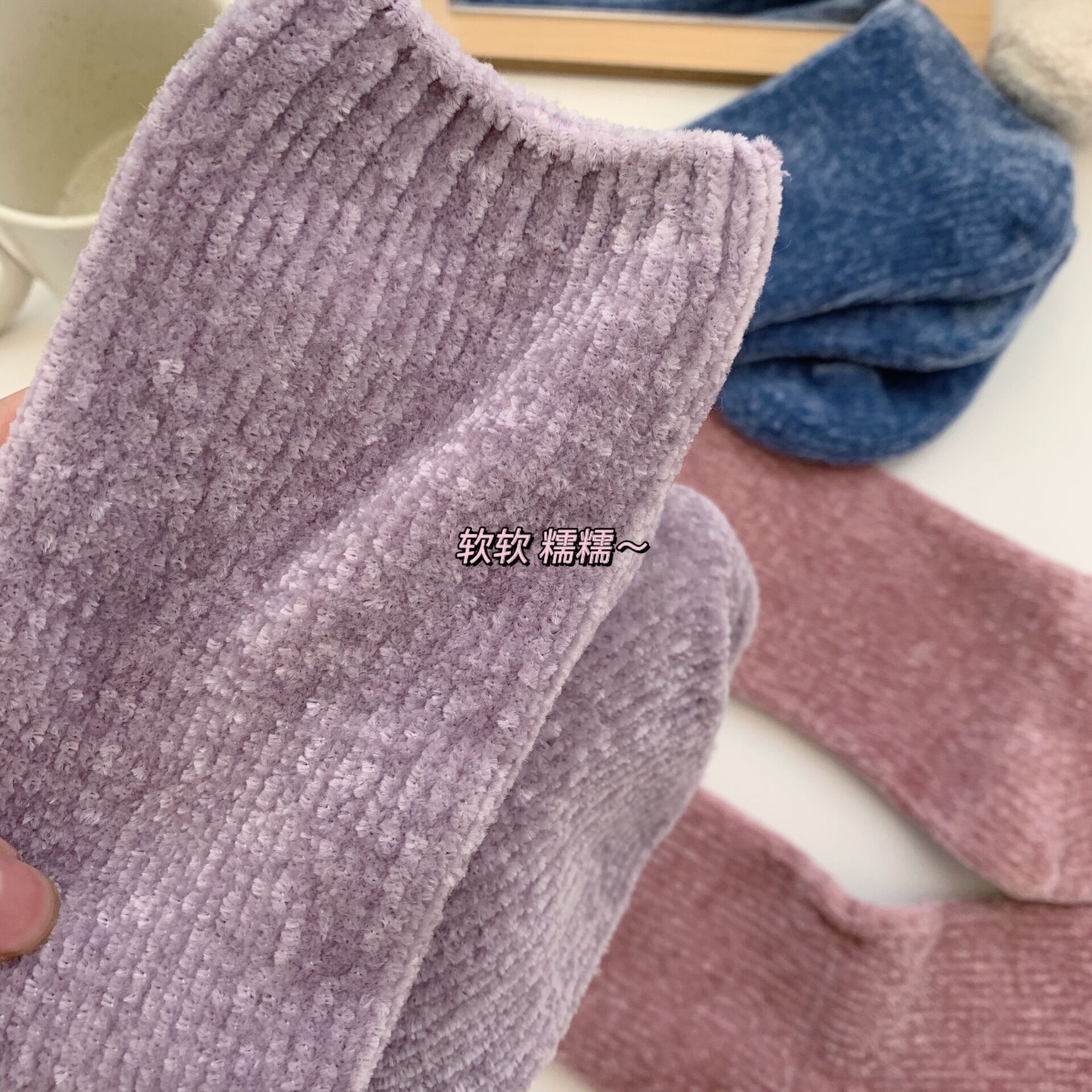 秋冬新款雪尼尔竖条加厚加绒保暖袜日系舒适家居地板毛绒绒纯色软糯保暖袜日系简约女棉袜浅色