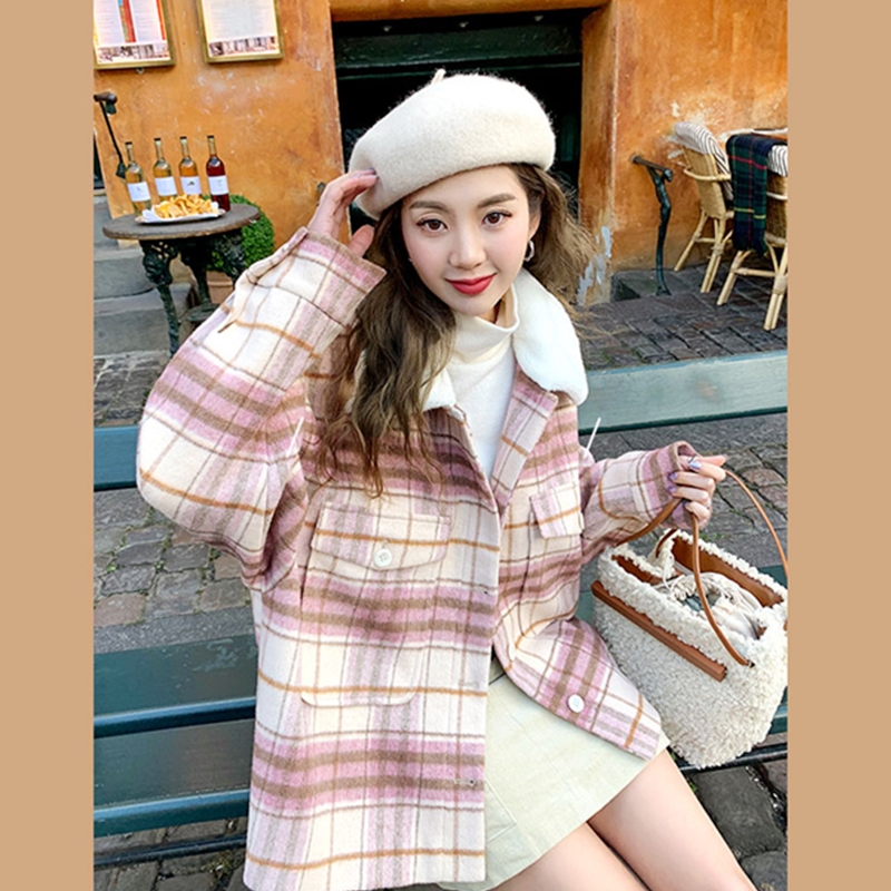 韩都衣舍2020秋冬新款韩版女装小个子呢子大衣小香风拼接毛呢外套