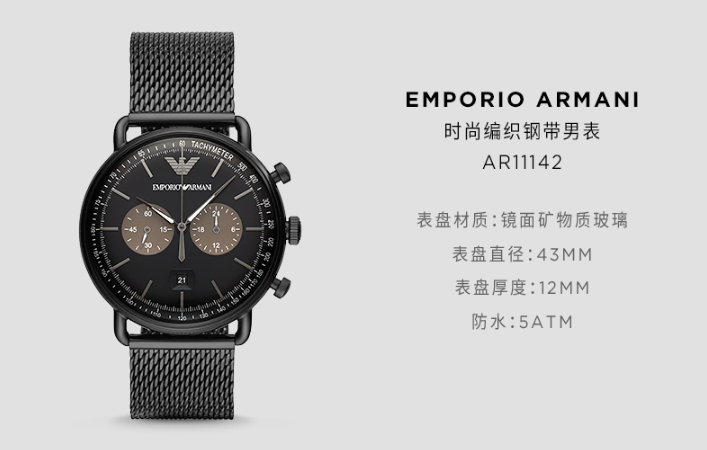 品牌: Emorio Armani 型号: AR11142 风格: 时尚 表带材质: 不锈钢