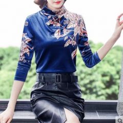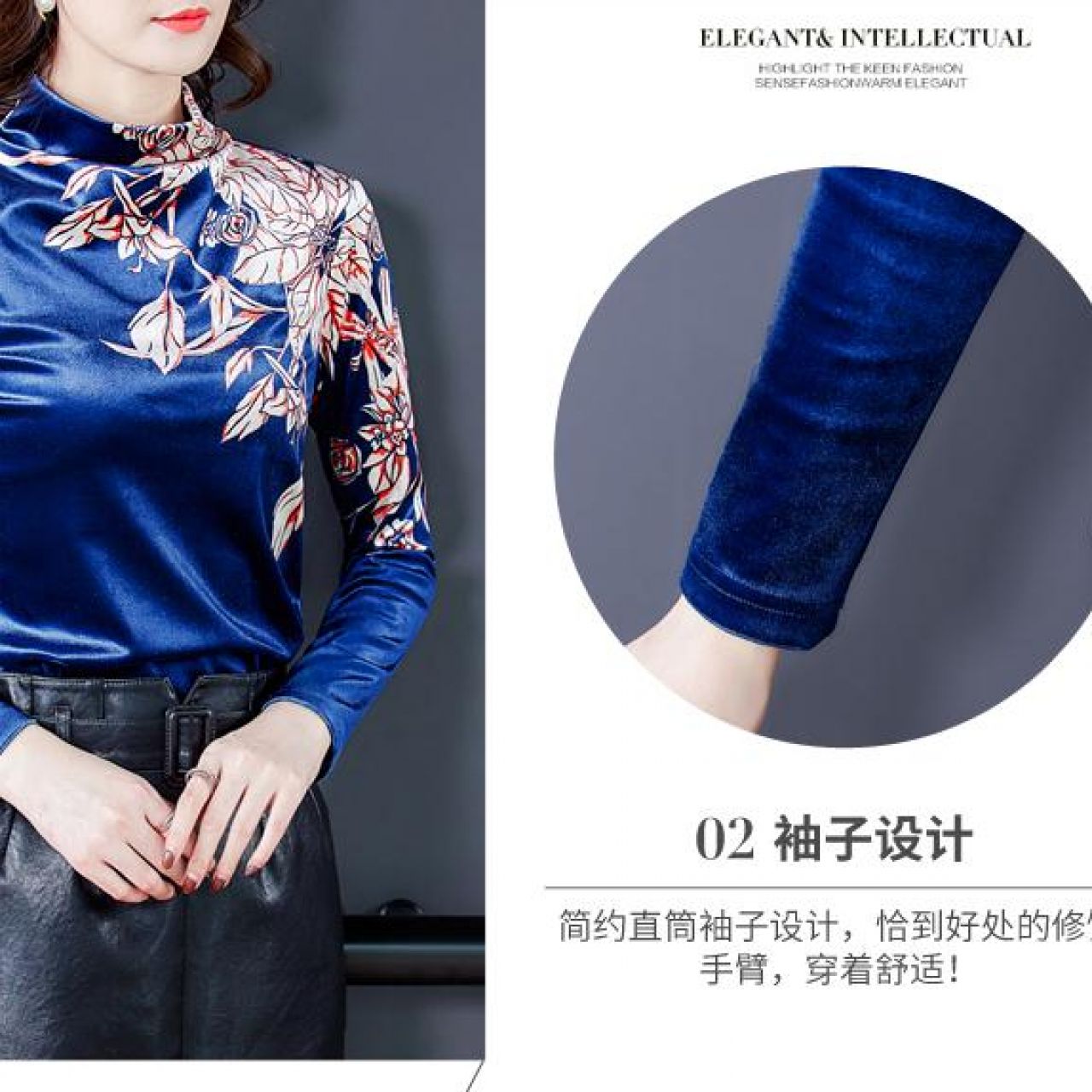 洋气质减龄秋冬T恤春秋装保暖打底衫中袖七分袖金丝绒上衣欧洲站