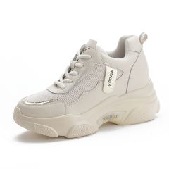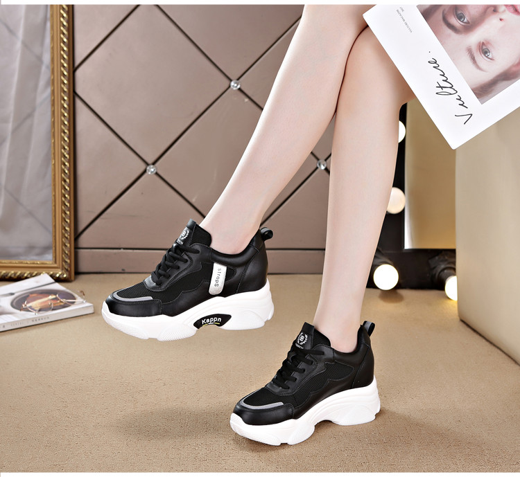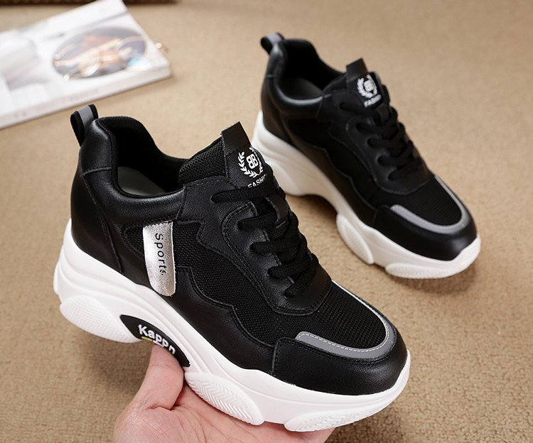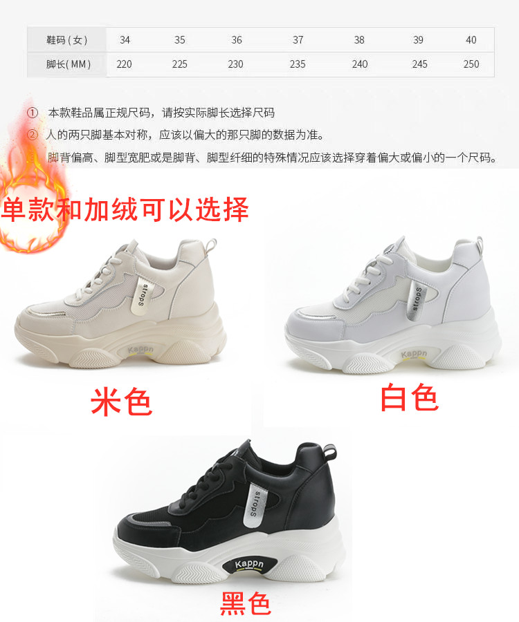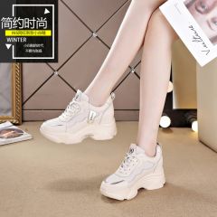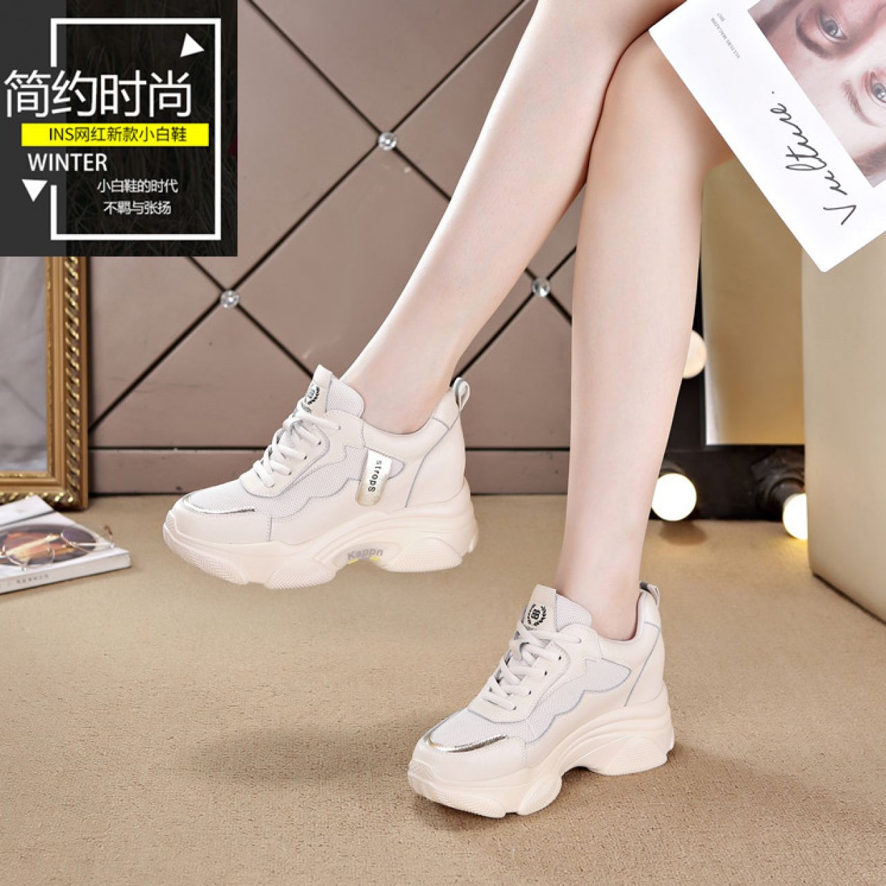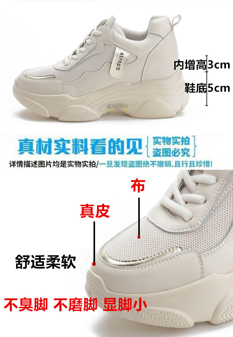 真皮内增高女鞋韩版百搭休闲鞋2020秋冬新款厚底运动鞋坡跟老爹鞋