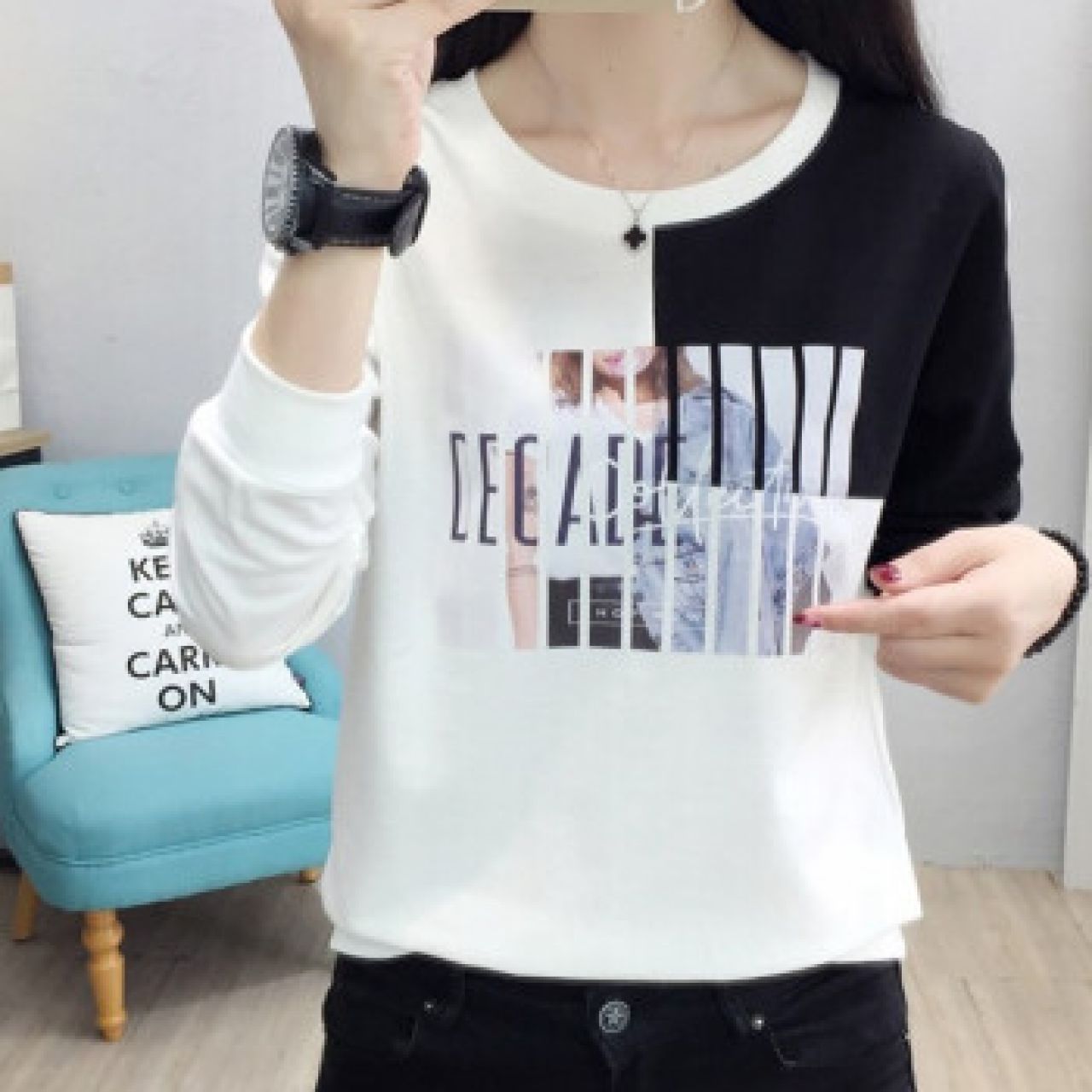 长袖t恤女装2020春秋新款宽松韩版百搭大码打底衫薄款白色卫衣上衣服