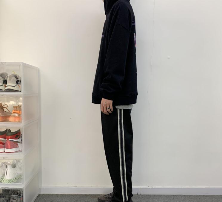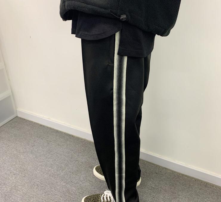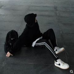 APAIG 街头潮牌黑白侧边条纹运动撞色卫裤男女宽松直筒坠感休闲裤