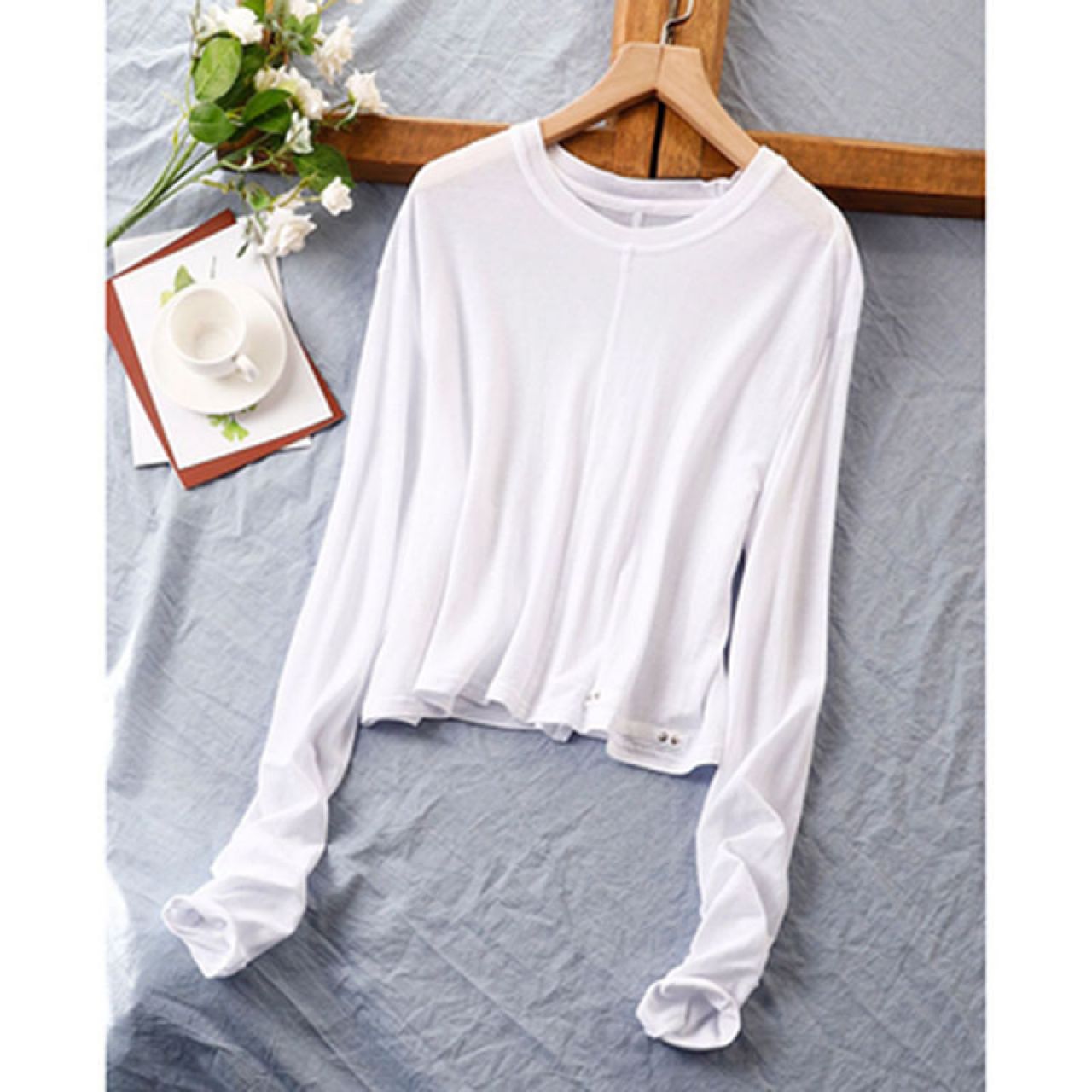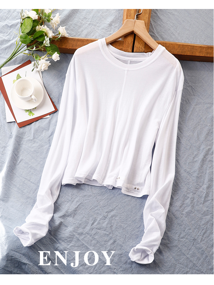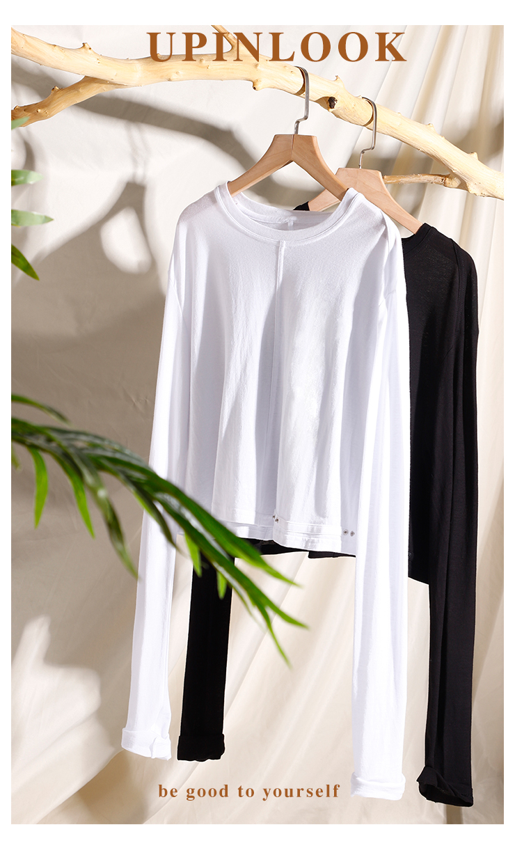 轻/薄/柔仅100克~短款露腰性感拉伸身材比例女纯色棉长袖T恤82096