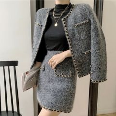 包臀短裙时尚两套装女2020秋冬装新款韩版气质毛呢外套