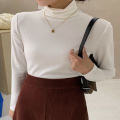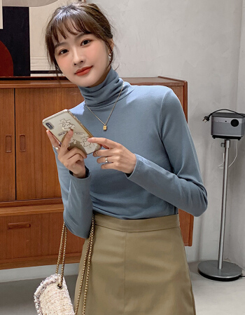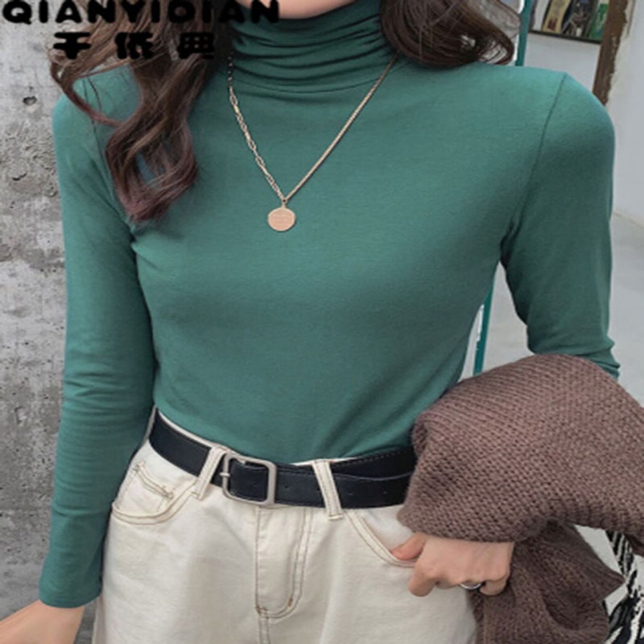 千依典2020秋装新款长袖T恤女修身显瘦打底衫纯色长袖打底衫女上衣 绿色 请拍正确尺码