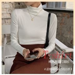 千依典2020秋装新款长袖T恤女修身显瘦打底衫纯色长袖打底衫女上衣 绿色