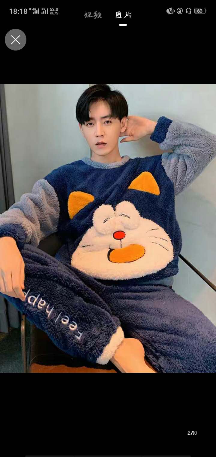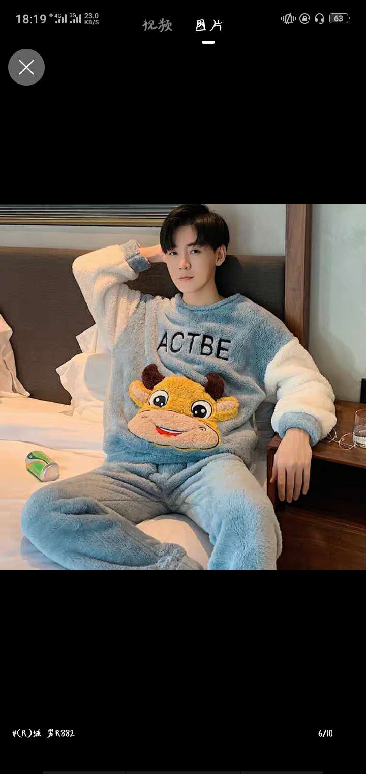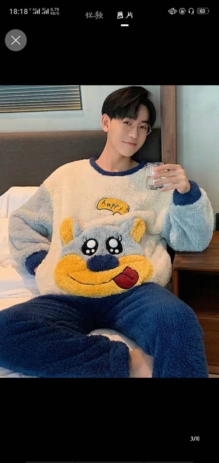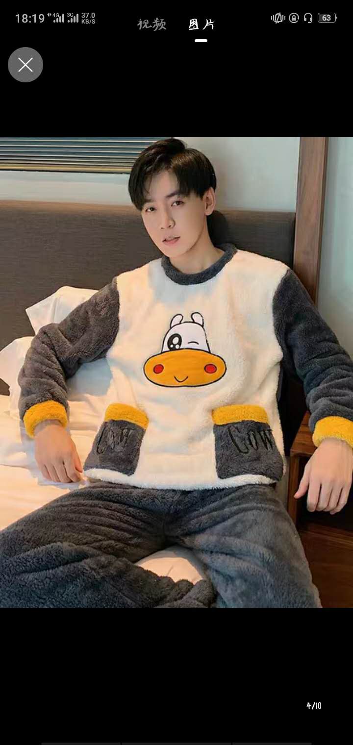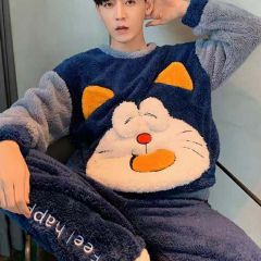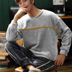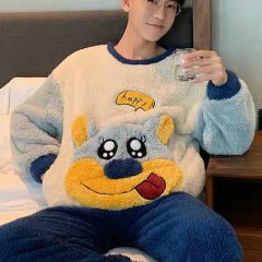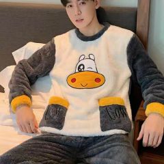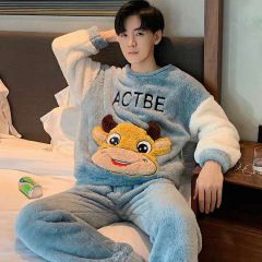 男士睡衣秋冬款冬季珊瑚绒加厚绒保暖法兰绒卡通青少年家居服套装