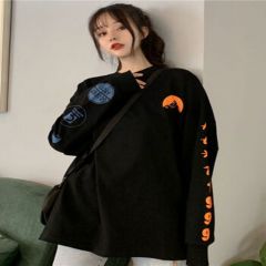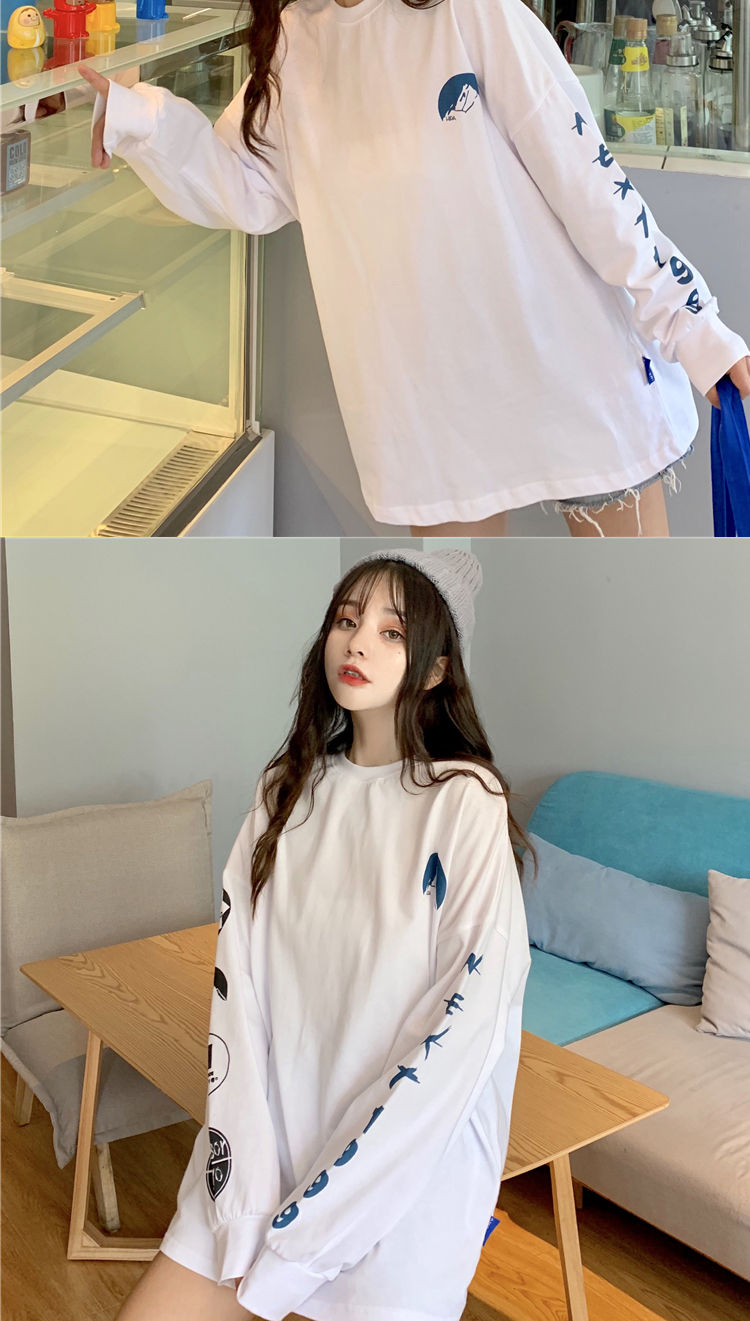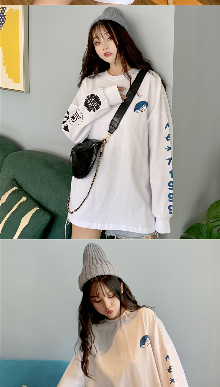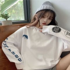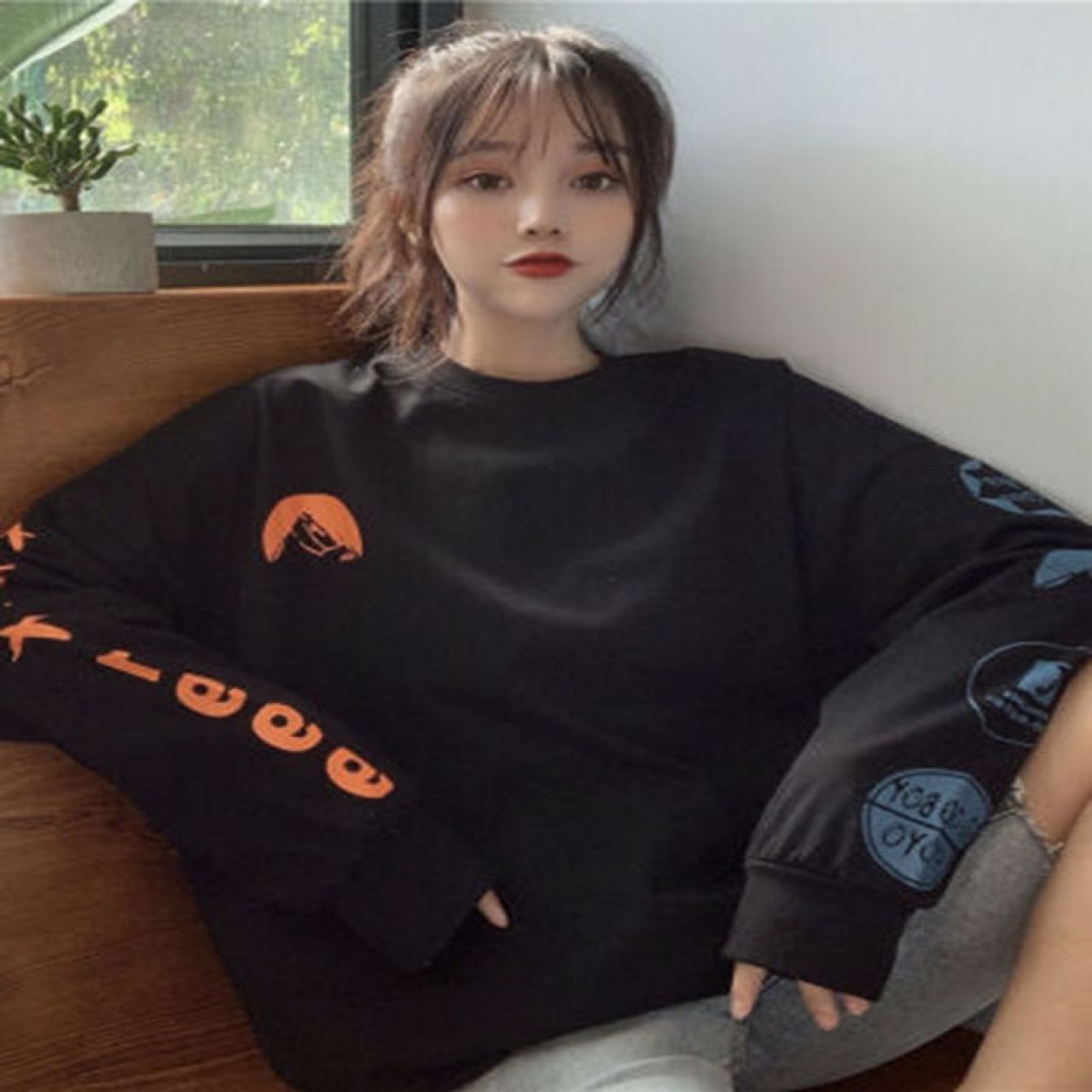 早秋cec长袖t恤女2020韩版风百搭学生体恤衫mschf套头上衣T 黑色 XL 120-140斤